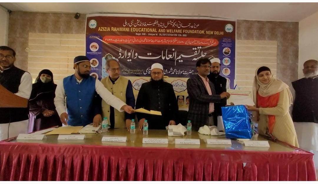 عزیزیہ رحمانی ایجوکیشنل اینڈویلفیئرفاﺅنڈیشن نئی دہلی کے زیراہتمام امیرشریعت سابع حضرت مولانامحمدولی رحمانی ؒ کی شخصیت وخدمات پرکل ہند مضمون نویسی کے مسابقہ کے بعد جلسہ تقسیم انعام وایوارڈز ملی ماڈل اسکول کے کانفرنس ہال، جامعہ نگر ، نئی دہلی میں نہایت ہی تزک و احتشام کے ساتھ 5 فروری 2023 کومنعقد کیا گیا۔پروگرام کی صدارت امارت شرعیہ بہار ،اڑیسہ جھارکھنڈ کے نائب امیر شریعت حضرت مولانا محمد شمشاد رحمانی قاسمی نے فرمائی۔پروگرام کی نظامت جامعہ ملیہ اسلامیہ کے اسکالر عبدالواحد رحمانی ندوی نے کی ۔مہمان خصوصی کے طور پر پروفیسر صفدر امام قادری پٹنہ، پروفیسر احمد محفوظ جامعہ ملیہ اسلامیہ دہلی، حاجی محمدانور رحمانی کلکتہ ، مولانا زکریا قاسمی زید کالج، دہلی،جناب فیروز صدیقی دہلی، ڈاکٹر واحد نظیر جامعہ ملیہ اسلامیہ ، مفتی نادر قاسمی اسلامک فقہ اکیڈمی دہلی، جناب وسیم مظفر نگر،جناب محمد صلاح الدین مونگیر،جناب منیر انجم پرانی دہلی ،ڈاکٹر نوشاد منظر،ڈاکٹر توقیر راہی ، جناب فیض الااسلام فیضی کریٹیواسٹار، مولانا سبحان قاسمی نبی کریم دہلی، مولانا اسلم رحمانی خانقاہ رحمانی مونگیر، جناب سلیم میرٹھ کے علاوہ بڑی تعداد میں مہمانان کرام موجود تھے۔ جن کاشال پوشی کے ذریعہ استقبال کیا گیا۔