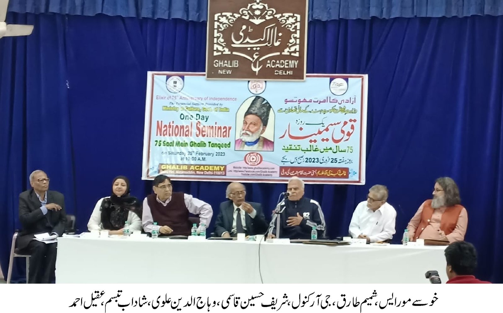 غالب اکیڈمی کے زیر اہتمام آزادی کے بعد پچہتر سال میں غالب تنقید پر ایک نیشنل سیمینار کا انعقاد کیا گیا۔پہلے اجلاس میں پروفیسر وہاج الدین علوی نے اپنے مقالے میںکہا کہ پچہتر سال میں غالب پر بہت کام ہوا ہے۔غالب نے کوئی فلسفہ نہیں پیش کیا وہ فلسفی دل کے مالک تھے۔ وہ معنی آفرینی کے شاعر تھے۔انھوں نے غالب کے شارحین اور ناقدین کا خصوصی ذکر کیا۔شمیم طارق نے اپنے مقالے پچہتر سال میں غالب تنقید کے رجحانات پر بولتے ہوئے کہا کہ غالب، تنقیدکا نقطۂ آغاز ہے۔ غالب نے اپنے بہت سے اشعار کو دیوان سے الگ کردیاتھا۔پچہتر سال میں غالب تنقید کے سب سے اہم نقاد شمس الرحمان فاروقی ہیں۔ دوسرے گوپی چند نارنگ کی کتاب بھی بہت اہم ہے۔ غالب نے سر سید اور شبلی دونوں کو متاثر کیا تھا۔پروفیسر شریف حسین قاسمی نے کہا کہ غالب کا اصل ماخذ بیدل ہے۔گوپی چند نارنگ غالب پر لکھتے ہوئے حالی کو پیش نظر رکھتے ہیں۔پہلے اجلاس میں شاداب تبسم نے اسلوب احمد انصاری کی غالب تنقید پر مقالہ پڑھا۔خوسے مورالیس نے کہا کہ مغرب کے لوگ فارسی اصطلاحات اور تلمیحات کو نہیں سمجھتے ان کا ترجمہ اسپینش میں ممکن نہیں ہے جب کہ اسلامی اصطلاحات اور تلمیحات کو سمجھانے میں دشواری نہیں ہوتی۔پہلے اجلاس کی صدارت ڈاکٹر جی آر کنول نے کی۔ دوسرے اجلاس کی صدارت پروفیسر قاضی افضال حسین نے کی ،انھوں نے کہا کہ غالب کا زور معنی کو چھپانے میں تھا۔ پروفیسر قاضی جمال حسین نے آل احمد سرور کی غالب تنقید پر بولتے ہوئے کہا کہ آل احمد سرور نے غالب پر پچیس مضامین لکھے ۔ترجمے وتبصرے الگ ہیں۔اپنی تنقید میں انھوں نے حالی سے مکالمہ قائم کیا ہے۔ سرور صاحب کے مطابق غالب کی عظمت متروک کلام کی وجہ سے ہے۔سرور صاحب نے غالب کے متن پر گفتگو کی ہے۔ شعر میں پیچیدگی ہونی چا ہیے۔سرور صاحب کی تنقید امتیازی حیثیت رکھتی ہے۔اس سے نئی راہیں کھلتی ہیں۔ دوسرے اجلاس میں حنا آفرین اور صالحہ عاصم نے شمیم حنفی کی غالب تنقید پر مضمون پڑھا ،کیلاش وششٹھ سمیر نے ہندی میں غالب تنقیداور ڈاکٹر گیتانجلی کالا نے انگریزی میں غالب تنقید پر مقالہ پڑھااور ڈاکٹر خالد علوی نے غالب کے کم معروف ناقدین پر مقالہ پڑھا۔ پروفیسر ابو بکر عباد نے علی گڑھ کے غالب ناقدین کا ذکرکیا۔ڈاکٹرنفیس بانو نے محمد حسن کی غالب تنقید پر مضمون پڑھا۔ نظامت کے فرائض ڈاکٹر خالد اشرف نے ادا کئے۔