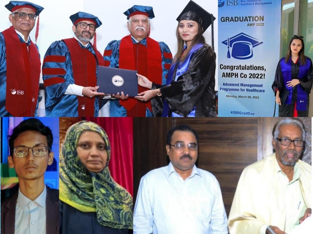 انسانیت و خدمت خلق ملت و قوم کے لئے دوں گی اور ہوسپیٹل کے ذریعے سے اپنی ایم بی بی ایس مکمل کرتے ہی فری خدمات کے طور پر ٹرینی کی حیثیت سے کیی ہوسپیٹل میں خدمات انجام دینے لگیں اور اس درمیان آجکل ایم ڈی ضروری ہوگیا ہے اسلیے انسا فاتین مظہر نے اپنی فوکسنںگ خدمات کو سامنے رکھتے ہوئے ہوسپیٹل منیجمینٹ ہیلتھ کیئر میں ایم بی اے کرنے کو ترجیح دیں تاکہ ہندوستان بھر میں پھیلے ہوئے ہوسپیٹل نیٹ ورک کا تجربہ حاصل کرسکیں اور ملت و قوم کے لئے بہتر خدمات شہر سے گاؤں تک انجام دینے میں کامیاب کوشش اور اسٹیڈی سے آج آپ نےISB سے اعلی تعلیم حاصل کرنے کے لئے اکزکیٹیو ایم بی اے ہیلتھ کیئر میں شاندار کامیابی حاصل کی اور اپنے ھیلتھ کئیر منیجمینٹ کے بیج میں اعلی مقام حاصل کیں اسلیے ISB CONVOCATION PROGRAMS MANALI میں انہیں ہندوستان کے ماہرین کے ہاتھوں ڈگری حاصل کرتے ہوئے جس خوشی کا اظہار کیا وہ لمحہ اور پل بہت یاد گار تھا ابوالخیر خاندان کے لیے اور خاصکر والدین کے لئے، محمد ابو مظہر اور رخشندہ راعنا، ابو عمر، ابو طاہر صاحب کے ساتھ ڈاکٹر مختار احمد فردین نے خصوصی مبارکباد پیش کرتے ہوئے انسا فاتین مظہر اور ابو عمر جو کہ ابھی فورتھ اءیر ایم بی بی ایس کے طالبعلم ہیں انسا فاتین مظہر ہی کیطرح والدین اور ملک و قوم کا نام روشن کرنا چاہتے ہیں