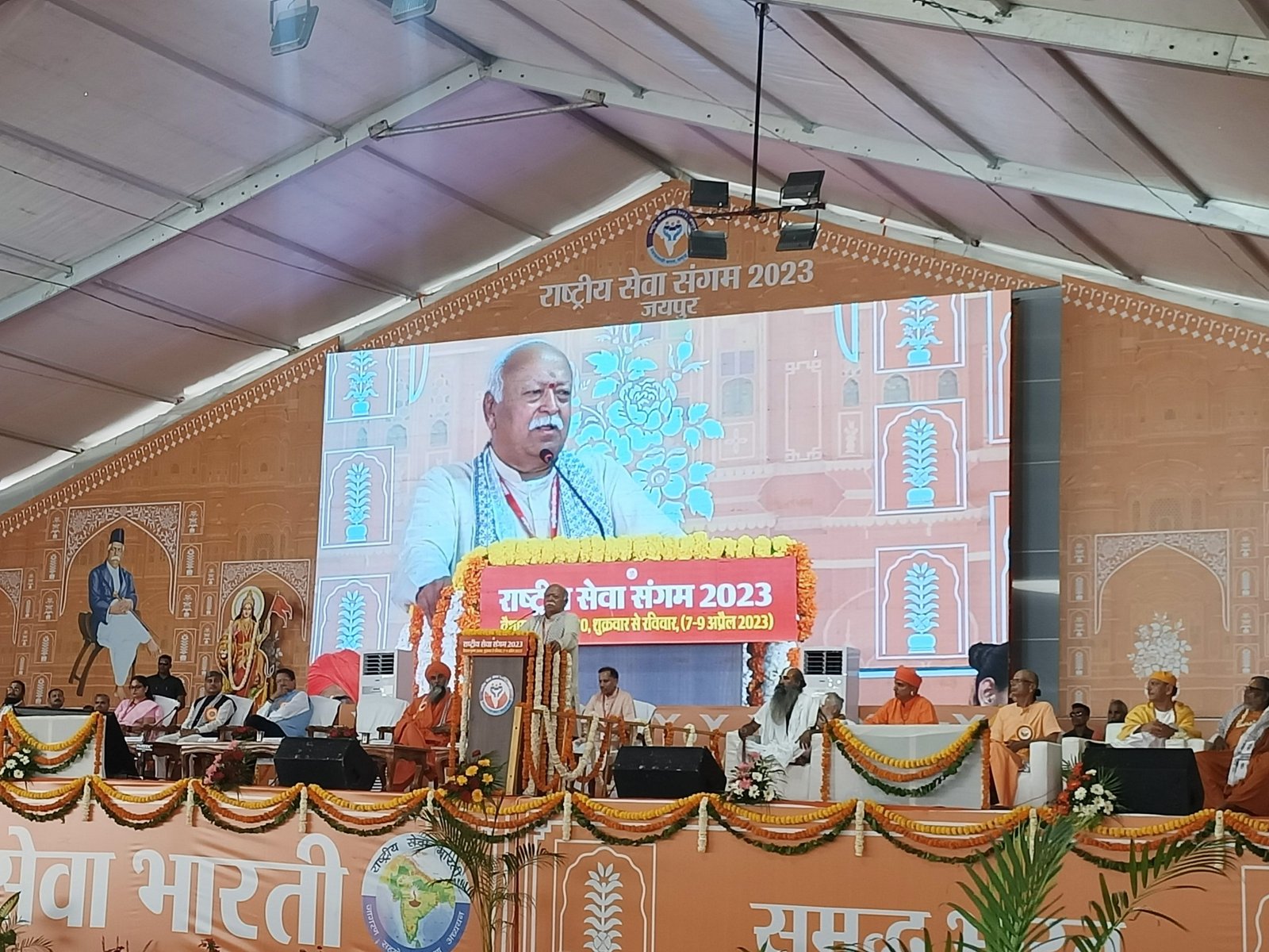 جے پور (راجستھان)، 07 اپریل:راشٹریہ سویم سیوک سنگھ کے سرسنگھ چالک ڈاکٹر موہن بھاگوت نے سماج کے تمام طبقات سے عزم کے ساتھ خدمت کرنے کی اپیل کی ہے۔ انہوں نے کہا کہ خدمت کا جذبہ ہمدردی سے جڑا ہوا ہے۔ جب پورا ملک کامل اور صحت مند ہوگا، تب ہی ہندوستان ہی عالمی لیڈر بن سکے گا۔ سنگھ کے سربراہ ڈاکٹر بھاگوت نے یہ بات جے پور کے قریب جمڈولی کے کیشو ودیا پیٹھ میں سیوا بھارتی کے تیسرے راشٹریہ سیوا سنگم کے افتتاح کے موقع پر کہی۔