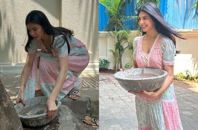 اداکارہ جیکلین فرنانڈیز نے گرمیوں میں جانوروں اور پرندوں کو پانی دینے کے لیے مٹی کے برتنوں کو بھرا۔ انسٹاگرام پر ان کی ان تصاویر کوشیئر کئے جانے کے بعد نیٹیزنز کی جانب سے ان کی تعریف کی گئی۔ تصویروں کا کیپشن دیتے ہوئے، جیکلین نے کہا، ’’ جانوروں کی پیاس بجھانے اورگرمیوں کے دنوں میں پانی کی کمی کو دور کرنے اور جانوروں و پرندوں کی پیاس بجھانے کے لئے ہمیشہ اپنے احاتے کے آس پاس پانی کے کنٹینر رکھیں‘‘۔