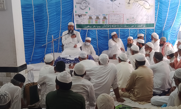 بھاگلپور (منہاج عالم ) مدرسہ اصلاح المسلمین چمپانگر بھاگلپور میں مدرسہ ہذا کے مہتمم مولانا قاری اسعد کی صدارت و مولانا مفتی خورشید انور قاسمی کی نظامت میں عازمین و عازمات حج کو تربیت دی گئی۔اس تربیتی کیمپ میں حج ہاؤس پٹنہ سے تشریف لائے چیف ٹرینر مولانا ایوب نظامی،دارالعلوم الاسلامیہ امارت شرعیہ پٹنہ کے مفتی یحییٰ غنی،حاجی عامر و حاجی نوشاد نے اس موقع پر تمام عازمین و عازمات حج کی تربیت فرمائ۔ مدینہ کے فضائل و برکات اور روضہ اقدس کے متعلق مولانا یحیئ غنی نے روشنی ڈالتے ہوئے کہا کہ عازمین حج اس سر زمین پر تشریف لے جا رہے ہیں۔جہاں حضور صلی اللہ علیہ وسلم آرام فرما ہیں۔وہ حصہ عظمت اور حرمت والا ہے۔مدینہ منورہ کو یہ شرف حاصل ہے۔ ہمارے آقا نے مکہ چھوڑ کر مدینہ کو اپنے لئے منتخب فرمایا۔انہوں نے کہا کہ یہاں کے عازمین و عازمات حج کو یک سوئ کے ساتھ سننے کا شرف حاصل ہوا۔ انہوں نے کہا کہ حج جس کا آسان لگتا ہے۔اس کا حج قبول ہوتا ہے۔اس لیے مجاہدہ سے گریز نہ کریں اور اپنا پورا وقت عبادات میں لگائیں۔مولانا ایوب نظامی نے کہا کہ خواتین ایام حیض کے دوران عمرہ نہیں کرسکیں گی۔اور مسجد حرام میں داخل نہیں ہوگی۔باقی سبھی کام کرتی رہیں گی۔خواتین اگر ناپاکی کے حالت میں طواف کرتی ہے تو ایک اونٹ کی قربانی واجب ہے۔اگر ایسا نہیں کرتی ہے تو وہ اپنے شوہر کے لئے حرام ہونگی۔اسے دوبارہ حج کرنے جانا پڑے گا۔پٹنہ سے تشریف لائے آئیے حاجی عامر و حاجی نوشاد نے بھی حج کے متعلق بہت ساری باتیں بتائیں۔مولانا مفتی محمد الیاس نے عمرہ پر اپنی باتیں پیش کی۔اس موقع پر حاجی عمر فاروق،حاجی محمد شہاب الدین،مولانا اسجد ناظری نظر وغیرہ نے عازمین و عازمات حج کو ہیلتھ کارڈ تقسیم کیے۔اس دوران مدرسہ اصلاح المسلمین کے مدرسین و طلبہ نے تمام عازمین و عازمات کی خدمات میں پیش پیش رہے۔
