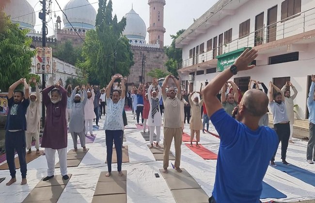 بھوپال، 21 جون: مدھیہ پردیش وقف بورڈ احاطے میں بدھ کو پہلی بار بی جے پی اقلیتی مورچہ کے تعاون سے یوگا ڈے پروگرام کا انعقاد کیا گیا۔ اس موقع پر بورڈ کے ملازمین، اقلیتی مورچہ کے عہدیداران اور دیگر معززین نے بھی یوگا کیا۔بین الاقوامی یوم یوگا کے موقع پر بدھ کو مدھیہ پردیش وقف بورڈ کے دفتر احاطے میں بھی ایک پروگرام کا انعقاد کیا گیا۔ بی جے پی اقلیتی مورچہ اور وقف بورڈ کے مشترکہ زیر اہتمام منعقدہ اس پروگرام میں وقف بورڈ کے صدر صنور پٹیل، بی جے پی اقلیتی مورچہ کے ریاستی صدر ایم اعجاز خان کے ساتھ وقف بورڈ کے ملازمین اور سماجی لوگوں نے یوگا انسٹرکٹر کی رہنمائی میں یوگا کیا۔