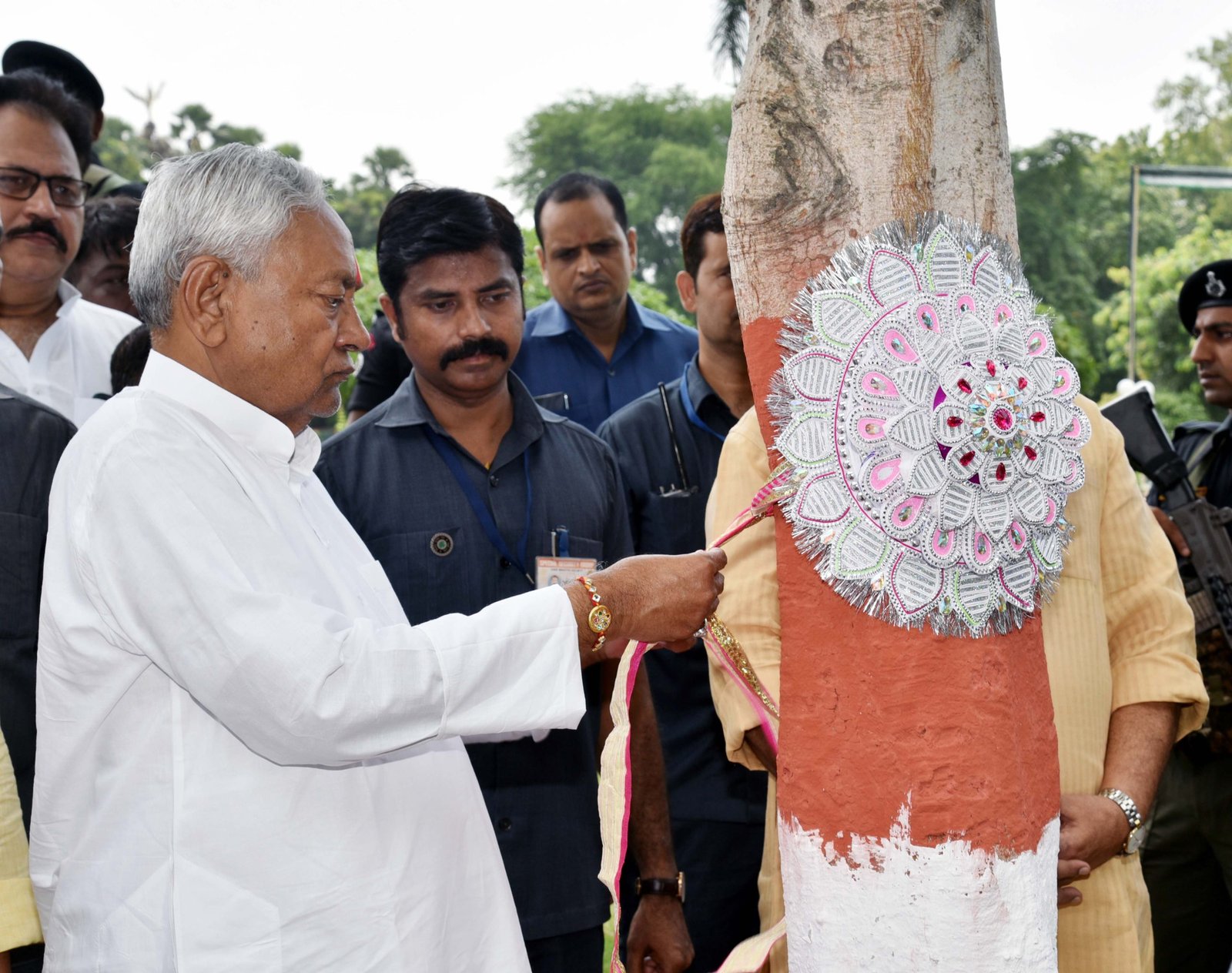 پٹنہ، 31 اگست 2023: وزیر اعلی جناب نتیش کمار نے رکھشا بندھن اور ’بہار ورچھ رکھشا دیوس‘ کے موقع پر آج پٹنہ میں واقع راجدھانی واٹیکا-2 میں ایک درخت کوتحفظ کا دھاگہ باندھا اور اس موقع پر وزیر اعلیٰ راجدھانی واٹیکا میں درخت بھی لگایا۔