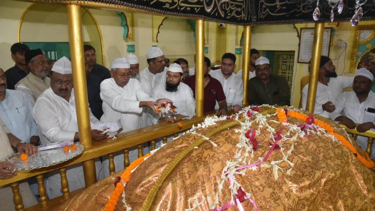 پٹنہ، 28 ستمبر 2023:- وزیر اعلیٰ جناب نتیش کمار نے آج پھلوار شریف خانقاہ مجیبیہ میں عرس کے پرمسرت موقع پر حضرت مخدوم سید شاہ پیر محمد مجیب اللہ قادری رحمتہ اللہ علیہ کے مزار پر چادر پوشی کی اور ریاست میں امن اور خوشحالی کے لیے دعا کی۔اس موقع پر خانقاہ مجیبیہ کے حافظ محمد نعیم الدین مجبی نے وزیر اعلیٰ کو ریاست کی امن وسلامتی اور خوشحالی کے لیے دعا کرائئ۔