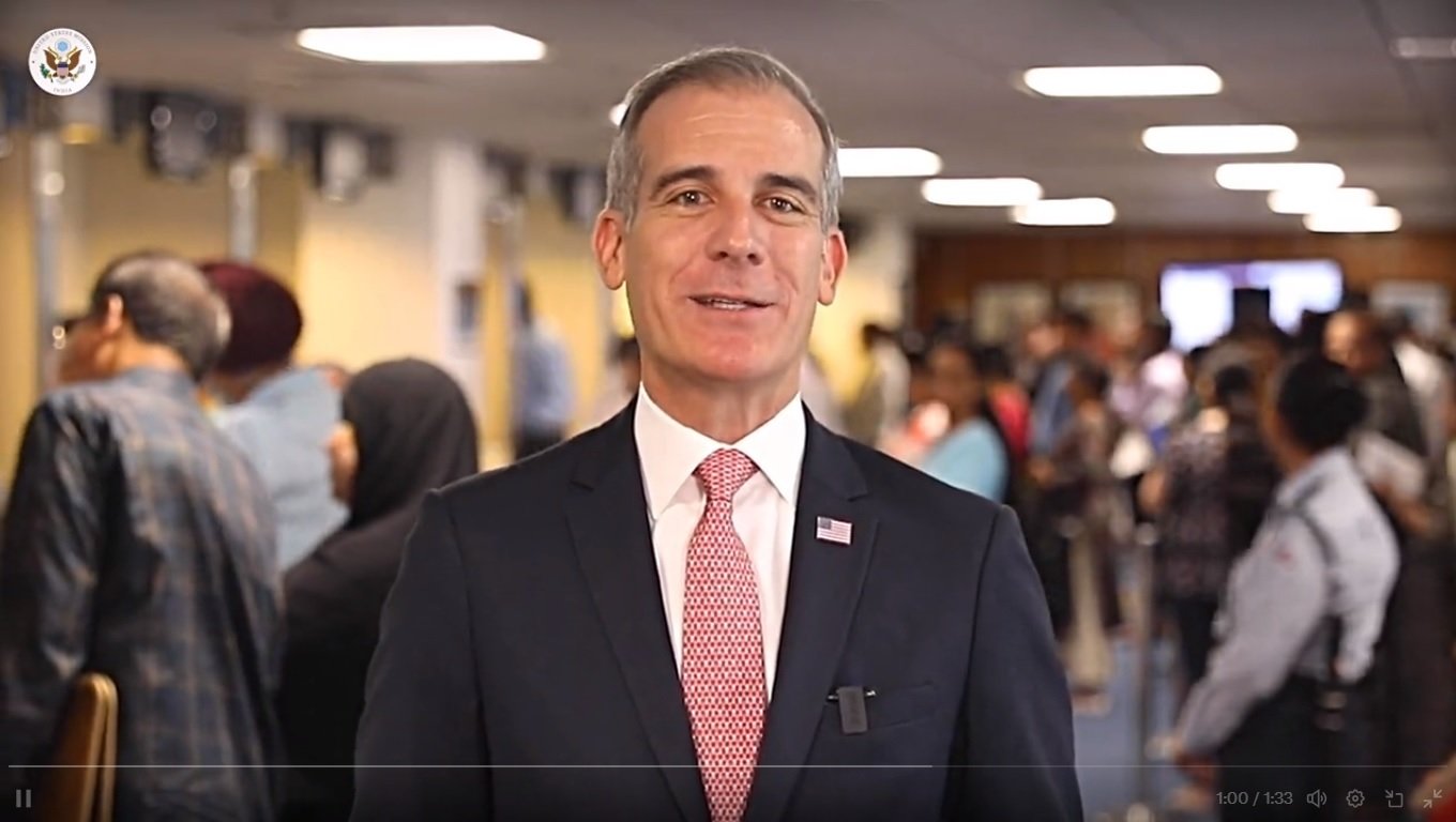 भारत में अमेरिकी राजदूत एरिक गार्सेटी ने एमआईटी में अपने बेटे को ग्रेजुएशन के लिए देखने जा रहे एक भारतीय जोड़े को व्यक्तिगत रूप से दस लाखवां वीजा सौंपा। अमेरिकी दूतावास का कहना है कि यह अमेरिका और भारत के बीच मजबूत संबंधों का प्रतीक है।