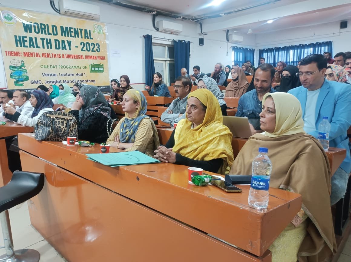 ا دماغی صحت کے عالمی دن کے اعزاز میں، گورنمنٹ میڈیکل کالج (جی ایم سی) اننت ناگ نے ایک شاندار تقریب کی میزبانی کی جس میں ماہرین، طبی پیشہ ور افراد اور طلباء کو دماغی صحت کے اہم پہلوؤں پر تبادلہ خیال کیا گیا  تقریب کا اہتمام محکمہ PSM اور شعبہ نفسیات نے مشترکہ طور پر کیا تھا۔
