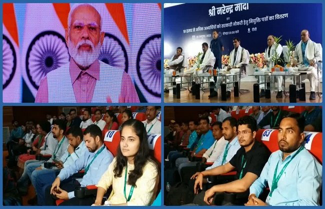 نئی دہلی،28؍اکتوبر: روزگار میلہ 2023: وزیر اعظم نریندر مودی نے دیوالی سے پہلے ملک کے نوجوانوں کو بڑا تحفہ دیا ہے۔ وزیر اعظم نے آج یعنی ہفتہ 28 اکتوبر کو ویڈیو کانفرنسنگ کے ذریعے 50,000 سے زیادہ تقرری لیٹر تقسیم کیے۔ اس موقع پر گفتگو کرتے ہوئے وزیراعظم نے کہا کہ روزگار میلے کے تحت اب تک لاکھوں نوجوانوں کو سرکاری ملازمتوں کے لیے تقرری کے لیٹر دیے جا چکے ہیں۔اب تک لاکھوں نوجوانوں کو سرکاری نوکریاں دی گئی ہیں۔پی ایم مودی نے کہا کہ روزگار میلہ گزشتہ سال اکتوبر میں شروع ہوا تھا۔ مرکز اور این ڈی اے اور بی جے پی کی حکمرانی والی ریاستوں میں ‘روزگار میلے’ منعقد کیے جا رہے ہیں۔ اب تک لاکھوں نوجوانوں کو سرکاری ملازمتوں کے لیے تقرری خط دیے جا چکے ہیں۔ آج 50 ہزار سے زائد نوجوانوں کو سرکاری نوکریاں دی گئی ہیں۔پی ایم مودی نے کہا، “دیوالی میں ابھی کچھ وقت ہے، لیکن جن لوگوں کو 50,000اپائنٹمنٹ لیٹر ملے ان کے خاندانوں کے لیے یہ موقع دیوالی سے کم نہیں ہے۔”وزیر اعظم نریندر مودی نے ہفتہ کو کہا کہ ان کی حکومت نے روایتی اور ابھرتے ہوئے شعبوں جیسے قابل تجدید توانائی، دفاعی صنعت اور آٹومیشن میں روزگار کے مواقع فراہم کیے ہیں۔ ورچوئل میڈیم کے ذریعے پروگرام سے خطاب کرتے ہوئے انہوں نے کہا کہ روزگار میلہ نوجوانوں کے تئیں ہماری وابستگی کو ظاہر کرتا ہے۔ملک بھر میں 37 مقامات پر روزگار میلے کا انعقاد کیا جائے گا۔ملک بھر میں 37 مقامات پر روزگار میلے کا انعقاد کیا جائے گا۔ اس پہل کے تحت، مرکزی حکومت کے محکموں کے ساتھ ساتھ ریاستی حکومتوں/ مرکز کے زیر انتظام علاقوں میں بھرتی کی جا رہی ہے۔وزیر اعظم نے کہا، “آج ہندوستان اپنے نوجوانوں کو ہنر اور تعلیم سے آراستہ کر رہا ہے، تاکہ وہ ابھرتے ہوئے مواقع سے فائدہ اٹھا سکیں۔ ہندوستان جس سمت میں آگے بڑھ رہا ہے اور جس رفتار سے ترقی کر رہا ہے اس سے تمام شعبوں میں روزگار کے نئے مواقع پیدا ہو رہے ہیں۔ان محکموں میں نئی تقرریاں کی جارہی ہیں۔ملک بھر سے منتخب ہونے والے نئے بھرتی ہونے والے افراد مختلف دیگر وزارتوں/محکموں میں حکومت میں شامل ہوں گے جن میں وزارت ریلوے، محکمہ ڈاک، وزارت داخلہ، محکمہ محصولات، محکمہ اعلیٰ تعلیم، محکمہ سکول ایجوکیشن اینڈ لٹریسی، وزارت صحت اور خاندان شامل ہیں۔ فلاح و بہبود روزگار میلہ روزگار پیدا کرنے کو اولین ترجیح دینے کے وزیر اعظم کے عہد کو پورا کرنے کی طرف ایک قدم ہے۔