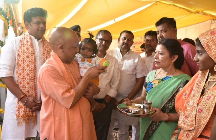 कार्यक्रम स्थल पर सीएम योगी ने नन्हे-मुन्ने बच्चों को अन्नप्राशन कराया। उन्होंने बच्चों को खूब दुलारा और आशीर्वाद देकर उनके स्वस्थ एवं उज्ज्वल भविष्य की कामना की।