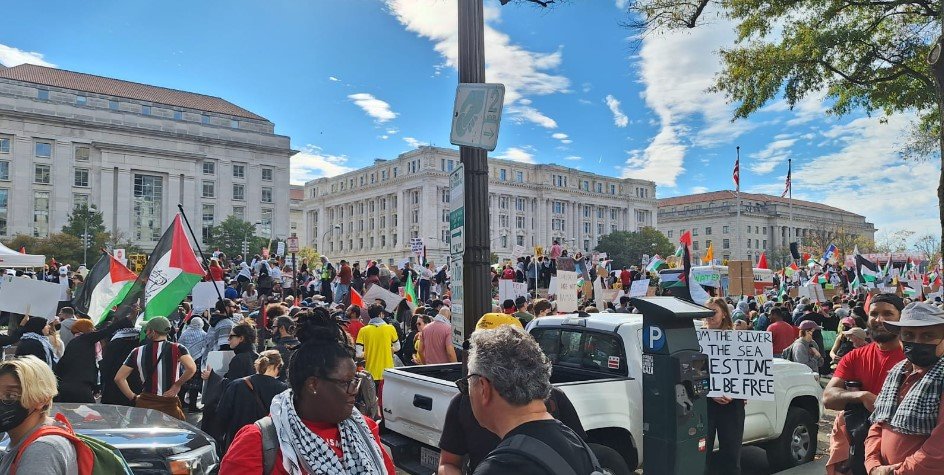 واشنگٹن،5نومبر:امریکی دارالحکومت واشنگٹن میں ہفتے کے روز ہزاروں شہریوں نے اسرائیل کی غزہ پر بمباری کے خلاف اور جنگ بندی کے حق میں احتجاجی مظاہرہ کیا۔ مظاہرین اسرائیل کی سویلینز آبادی کے خلاف جارحیت اور صدر جوبائیڈن انتظامیہ کی اسرائیل حماس جنگ کے بارے میں پالیسی کی بھی مذمت کر رہے تھے۔مظاہرین نے ہاتھوں میں پلے کارڈز اٹھا رکھے تھے، جن پر تحریر تھا’ فلسطینیوں کی زندگیاں اہم ہیں۔ غزہ کو جینے دو۔۔ غزہ والوں کا خون تمہارے ہاتھوں پر ہے۔’ ان نعروں والے کتبوں کی وجہ جنگ بندی کے خلاف پالیسی ہے۔ جس کے تحت امریکی انتظامیہ نہیں چاہتی کہ مکمل اور مستقل جنگ بندی کیا جائے۔البتہ امریکی انتظامیہ بمباری میں وقفے کے دوران جنگ بندی چاہتی ہے تاکہ مغویوں کو غزہ سے نکالنے کا امکان پیدا ہو اور انسانی بنیادوں پر امدادی اشیا کی فراہمی ممکن ہوتی رہے۔ہفتے کے روز واشنگٹن میں احتجاجی مظاہرہ منظم کرنے والے کارکنوں نے اس احتجاج کو ‘ نیشنل مارچ آن واشنگٹن: فری فلسطین ‘ کانام دیا تھا۔ امریکہ کے مختلف شہروں سے مظاہرین کے واشنگٹن پہنچنے کے لیے بسوں کا اہتمام کیا گیا تھا۔ احتجاج منظم کرنے والے گروپ کی طرف سے مطالبہ کیا گیا ہے کہ ‘جنگ روکنے کے لیے اقدام کرو اور نسل پرستی کا خاتمہ کرو۔’مظاہرین بھارت کے زیر انتظام کشمیر میں آزادی کے لیے لگائے جانیوالی کشمیریوں کے نعروں کی طرح نعرے لگا رہے تھے ‘ ہمیں کیا چاہیں آزادی۔’ ‘ تیرا باپ بھی دے گا آزادی’۔مبصرین کے مطابق ہفتے کے روز واشنگٹن میں ہونے والا احتجاجی مظاہرہ فلسطینی عوام کے حق میں حالیہ برسوں کے دوران ہونیوالے سب مظاہروں سے بڑا تھا۔ ہجوم وائٹ ہاؤس کے نزدیک فریڈم پلازہ پر اکٹھا ہونا شروع ہوا۔ شروع میں ایک لمحے خاموشی اختیار کی گئی۔واضح رہے اسرائیل نے غزہ پر اوپر سے مسلسل بمباری جاری رکھنے کے علاوہ زمین سے غزہ کا مسلسل محاصرہ کر رکھا ہے۔ اس دوران اب تک 9488 شہری شہید ہو چکے ہیں۔ ان میں بڑی تعداد عورتوں اور بچوں کی ہے۔فلسطینیوں کی ان مسلسل بڑھتی ہوئی ہلاکتوں کی وجہ سے دنیا بھر سے جنگ بندی کا مطالبہ سامنے آرہا ہے۔لیکن اسرائیل کی طرح واشنگٹن بھی سمجھتا ہے کہ جنگ بندی کرنے سے حماس کو سنبھلنے کا موقع مل جائے گا۔تاہم واشنگٹن میں وائٹ ہاوس کے قریب تر آکر احتجاج کرنے والے ہزاروں شہری نعرے لگا رہے تھے ‘ بائیڈن تم چھپا نہیں سکتے ہوئے۔۔۔ تم فلسطینیوں کی نسل کشی کر رہے ہو۔