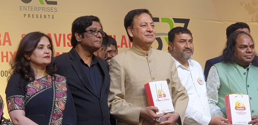 شہر حیدرآباد میں انداز و بیاں اور۔۔۔۔۔۔ عالمی شہرت یافتہ بینر تلے اردو زبان وادب کی راجدھانی حیدرآباد میں کامیاب ترین جشن مشاعرہ کا اہتمام اور نامور شعراء کرام کی آمد کے ساتھ معزز ترین شخصیات کی شرکت اور اعتراف خدمات کے لئے تہنیت و یاد گار مومنٹو چیف گیسٹ کے ہاتھوں حاصل کیا جانا ہر ایک پل اور لمحہ ایس ایس کنونشن ہال میں ہزاروں محبان اردو شیریں زبان وادب اور لکھنؤ و حیدراباد، دونوں ہی نوابوں کے شہر میں ریحان صدیقی صاحب اور شاذیہ قدوائی صاحبہ کیساتھ قاری محمد عبدالرحمان صاحب کی بھرپور نمائندگی حیدرآباد دکن کی جانب سے کیا جانا، قابلِ ستائش اور رشک سے کم نہیں ہے اور آج جشن مشاعرہ انداز و بیاں اور نے دنیائے جہان کو گنگا جمنی تہذیب و ثقافت کے پلیٹ فارم سے یہ پیغام محبت و انسانیت دیتے ہوئے ثابت کر دکھایا، جسکا اظہار و تشکر ادا کرتے ہوئے ڈاکٹر مختار احمد فردین کہتے ہیں کہ