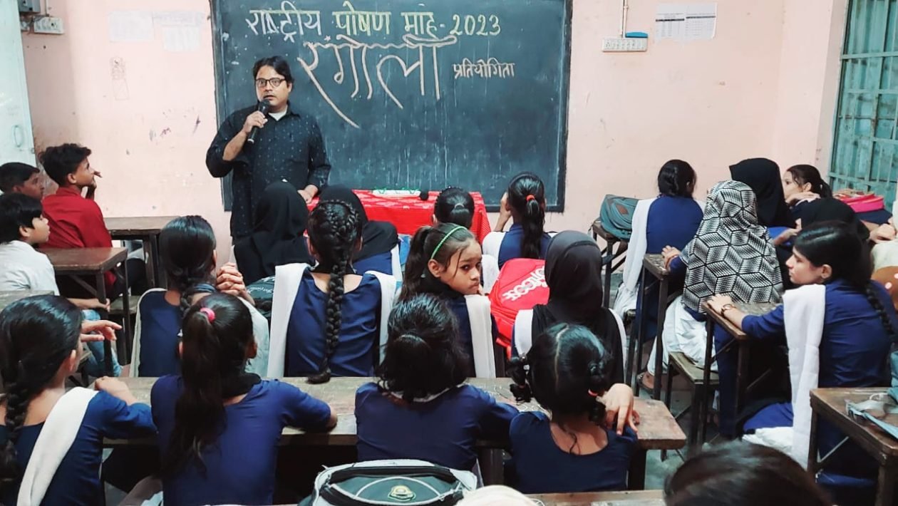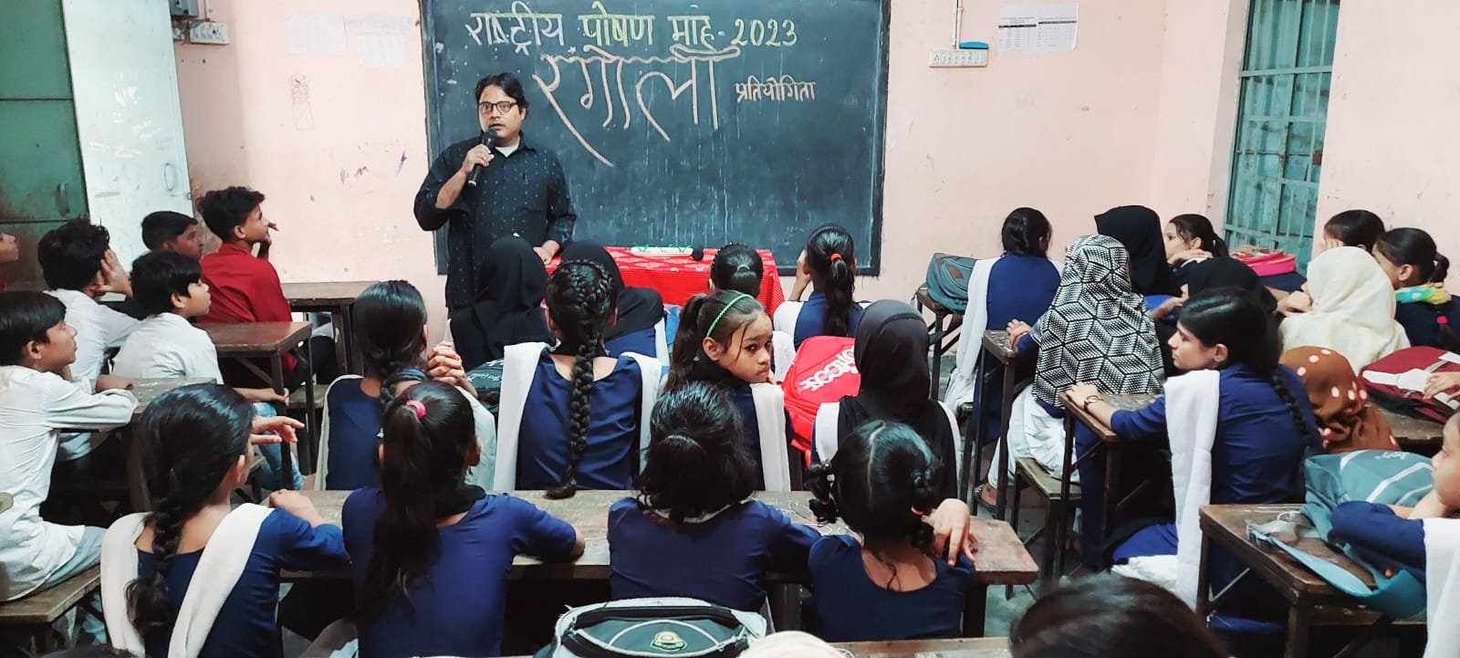 8 नवंबर 2023 गुलज़ारबाग, पटना। राजकीय उर्दू मध्य विद्यालय सकरी गली गुलजरबाग पटना में रंगोली प्रतियोगिता का आयोजन किया गया। इस प्रतियोगिता में कक्षा 6, 7 एवं 8 के 20 बच्चों ने भाग लिया। विद्यालय के शिक्षक श्री मो० मोअज़्ज़म आरिफ ने बताया कि राष्ट्रीय पोषण माह 2023 के अवसर अनेक गतिविधियों का आयोजन विद्यालय में बड़ी धूमधाम से किया गया था। उस समय बच्चों से विभिन्न प्रकार के प्रतियोगिताएं कराई गई थी। सफल श्रेष्ठ बच्चों को आज पुरस्कृत कर मनोबल बढ़ाने का कार्य किया जा रहा है। विद्यालय के प्रधानाध्यापक संजय कुमार बताते हैं कि इस प्रकार के कार्यक्रम से बच्चों में क्रियाशीलता एवं सकारात्मकता का विकास होता है। प्रधानाध्यापक बताते हैं कि सफल एवं श्रेष्ठ बच्चों को श्री आरिफ जी के सौजन्य से पुरस्कृत किया गया। बी०एन०आर टीचर ट्रेनिंग कॉलेज के प्रशिक्षू सुश्री फातिमा ज़हरा बताती है कि बच्चों द्वारा बनाई गयी सभी रंगोली विषय आधारित थी परंतु इसी में से तीन श्रेष्ठ बच्चों का चयन विद्यालय की शिक्षिका अनुप्रिया द्वारा किया गया। इस अवसर पर बी०एन०आर टीचर ट्रेनिंग कॉलेज के प्रशिक्षू शहनाज़ खातून शाजि़या परवीन सानिया फातिमा रुकैया निखत फौजि़या इमाम आदि उपस्थित रहीं।