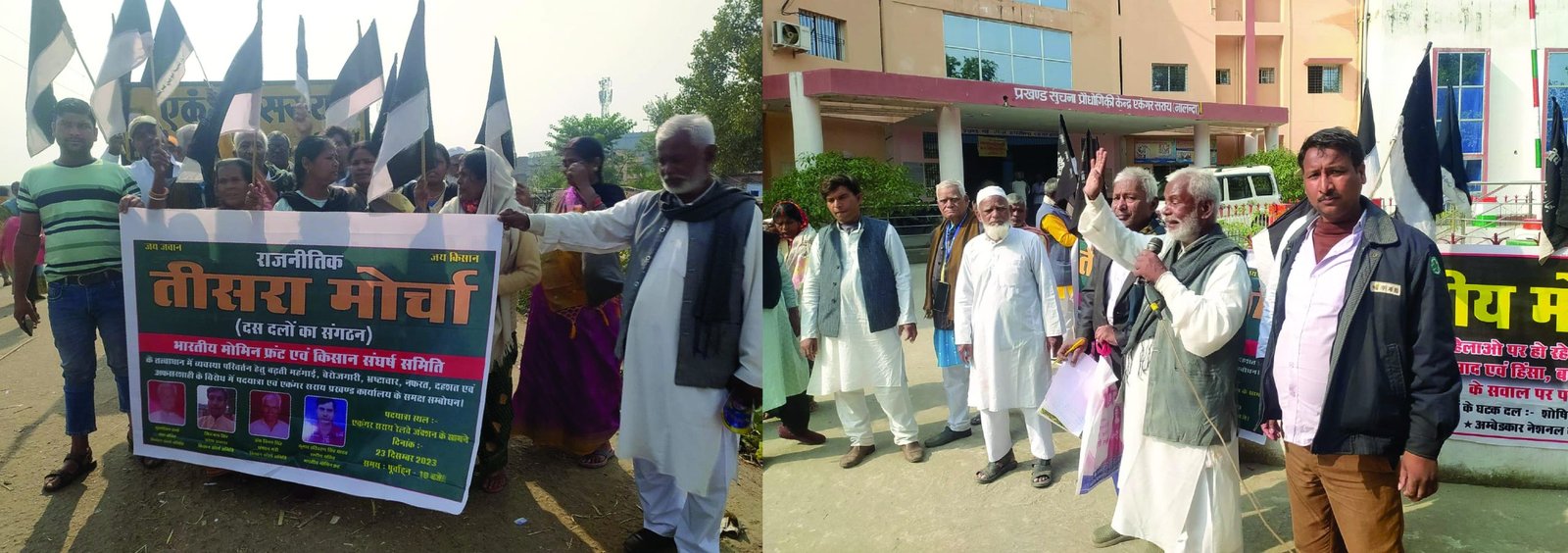 ہے۔دوسری طرف بڑھتی ہوئی گرانی، بیروزگاری، بد عنوانی،ظلم و زیادتی،نفرت و دہشت کا ماحول اور نا انصافی سے عوام پریشان اور بیزار ہیں۔یہ کہنا ہے بھارتیہ مومن فرنٹ کے قومی صدر ڈاکٹر محبوب عالم انصاری کاجو آج ملک میں سیاسی نظام کی تبدیلی اور سیاست و اقتدار میں حصہ داری کے لئے بھارتیہ مومن فرنٹ کے زیر اہتمام چلائی جارہی عوامی تحریک کے تحت ایکنگر سرائے ریلوے اسٹیشن سے پیدل مارچ میں شریک ہو کر بلاک دفتر تک پہنچ کر مجمع سے خطاب کر رہے تھے۔انہوں نے مزید کہا کہ جمہوریت پر حملے مسلسل حملے ہو رہے ہیں اور حزب اختلاف کے اراکین پارلیمنٹ کو کسی نہ کسی بہانے معطل کرکے آئین بدلا جارہا ہے۔اس لیے ملک کی دوسری آزادی کے لیے عوام کو آگے آانا ہوگا۔اس موقع پر جناب انصاری نے اعلان کیا کہ پالیا مانی انتخاب 2024میں نالندہ پالیا مانی حلقے سے کمار ہری چرن سنگھ یادو(قومی سکریٹری،بھارتیہ مومن فرنٹ)تیسرے مورچہ کے امید وار ہوں گے۔جناب کمار ہری چرن سنگھ کی قیادت میں نکالے گئے اس پیدل مارچ میں تیسرے موچے کے مختلف رہنمائوں نے شرکت کی اور عوام و مجمع سے خطاب کیا۔ان میں فرنٹ کے قومی جنرل سکریٹری بھیم رائو، صوبہ بہار میں فرنٹ کے نائب صدرشیو شنکر لال،انیل کمار،مالتی دیوی،رینا دیوی،پونم دیوی، گیتا دیوی، پرشورتم سنہا، ڈاکٹر ونے سنگھ،سدھ ناتھ کمار،سگم کمار،وجئے کمار اور متھن کمار اہم ہیں۔