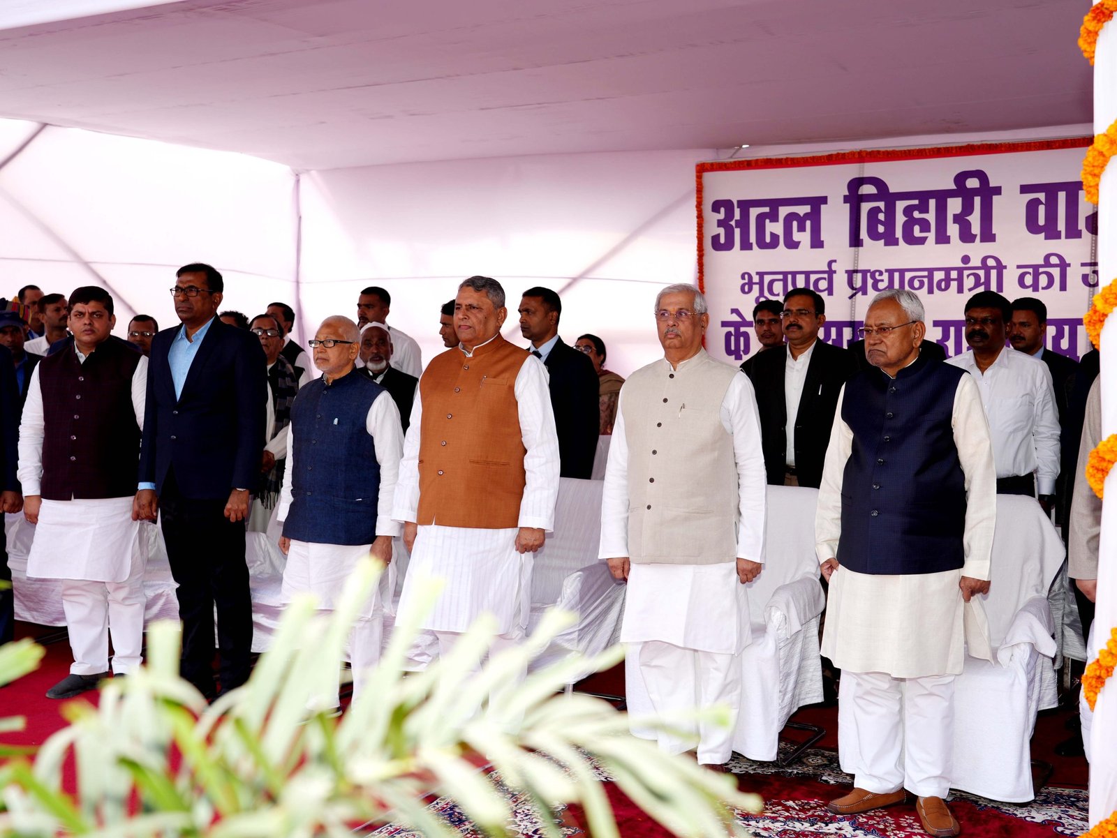 پٹنہ، 25 دسمبر 2023:- سابق وزیر اعظم بھارت رتن آنجہانی اٹل بہاری واجپئی کا یوم پیدائش آج پورے ملک میں منایا گیا۔آنجہانی اٹل بہاری واجپائی کے یوم پیدائش پر پٹنہ کے پاٹلی پترا پارک میں سرکاری یوم پیدائش کی تقریب کا اہتمام کیا گیا۔ گورنرجناب راجندر وشوناتھ ارلیکر اور وزیر اعلیٰ جناب نتیش کمار نے آنجہانی اٹل بہاری واجپائی کے مجسمہ پرگلپوشی کر کیانہیں جذباتی خراج عقیدت پیش کیا۔