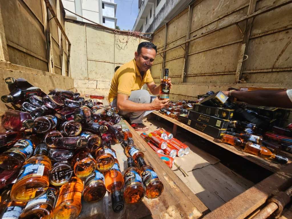 بیلگام:-( تقی صدیقی ) سب ڈویژن کے ڈپٹی سپرنٹنڈنٹ آف ایکسائز، بیلگام تعلقہ کے بیجگرنی گاؤں کو کولی واڑی گاؤں سے جوڑنے والی سڑک پر جمع ہوئے۔ ان کا مقصد روڈ پر گذرنے والی گاڑیوں کا مکمل معائنہ کرنا تھا، سامان کی نقل و حمل کی حفاظت اور قانونی حیثیت کو یقینی بنانا تھا۔ اپنے آپریشن کے دوران، ان کی توجہ ایک سفید اشوک لیلینڈ کمپنی کی چار پہیہ والی سامان کی گاڑی کی طرف مبذول ہوئی جس کا رجسٹریشن نمبرka22c 9398 ہے اس گاڑی پر شکوک و شبہات پیدا ہوئے، جس نے ٹیم کو اس گاڑی کی مکمل تلاشی کی طرف اکسایا، ان کی نقل و حرکت سے ٹیم کا شک یقینی ہوتا گیا،آخر کار گاڑی کے اندر سےچھپی ہوئی شراب کی 760 بوتلیں بر آمد ہوئی، جو تقریباً  239.400 لیٹر گوون شراب تھیں۔ اس غیر قانونی عمل کو صفائی کے ساتھ سر انجام دیا جا رہا، جس میں نو  مختلف قسم کی الکحل شامل تھی جو ریاست گوا کے اندر فروخت کی گئی تھی۔ ٹیم کی مستعد کوششوں نے اس غیر قانونی سرگرمی کو کامیابی کے ساتھ روک دیا، اوران اشیاء کی غیر مجاز طریقے سے تقسیم کو روکا گیا۔