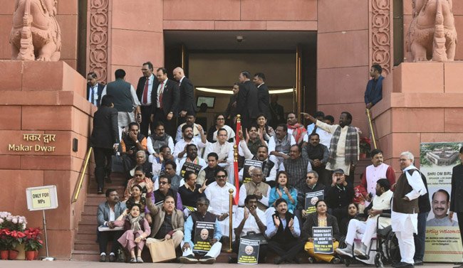 نئی دہلی،20؍دسمبر:پارلیمنٹ میں احتجاج پر اپوزیشن ارکان پارلیمنٹ کی معطلی کا عمل آج بھی جاری رہا۔ لوک سبھا اسپیکر اوم برلا نے دو اور ممبران پارلیمنٹ کو ایوان میں بدتمیزی پر معطل کر دیا۔ سرمائی اجلاس میں اب تک دونوں ایوانوں سے معطل کئے گئے ارکان پارلیمنٹ کی تعداد 143 تک پہنچ گئی ہے۔لوک سبھا میں پلے کارڈز دکھانے اور ایوان کی توہین کرنے پر دو اور اپوزیشن ارکان کو پارلیمنٹ کے رواں سرمائی اجلاس کی بقیہ مدت کے لیے معطل کر دیا گیا۔ ایوان کی توہین کے معاملے میں اب تک کل 97 لوک سبھا ممبران کو معطل کیا جا چکا ہے۔ اس سے قبل گزشتہ ہفتے جمعرات کو 13، پیر کو 33 اور منگل کو 49 ارکان کو معطل کیا گیا تھا۔فوجداری قوانین سے متعلق تین بلوں پر بحث کے دوران پارلیمانی امور کے وزیر پرہلاد جوشی نے اپوزیشن کے دو ارکان – سی تھامس اور اے ایم عارف – کا نام لیا اور انہیں کرسی کی توہین کے الزام میں پارلیمنٹ کے موجودہ اجلاس کی بقیہ مدت کے لیے معطل کرنے کی تجویز پیش کی۔ جسے ایوان نے صوتی ووٹ سے منظور کر لیا۔ عارف کمیونسٹ پارٹی آف انڈیا-مارکسسٹ (سی پی آئی-ایم) کے ایم پی ہیں اور سی تھامس کیرالہ کانگریس کے ایم پی ہیں۔یہ ایک بریکنگ نیوز ہے، تفصیلات جلد شامل کی جائیں گی۔ مزید معلومات اور تازہ ترین اپ ڈیٹس کے لیے براہ کرم اس صفحہ کو ریفریش کریں۔