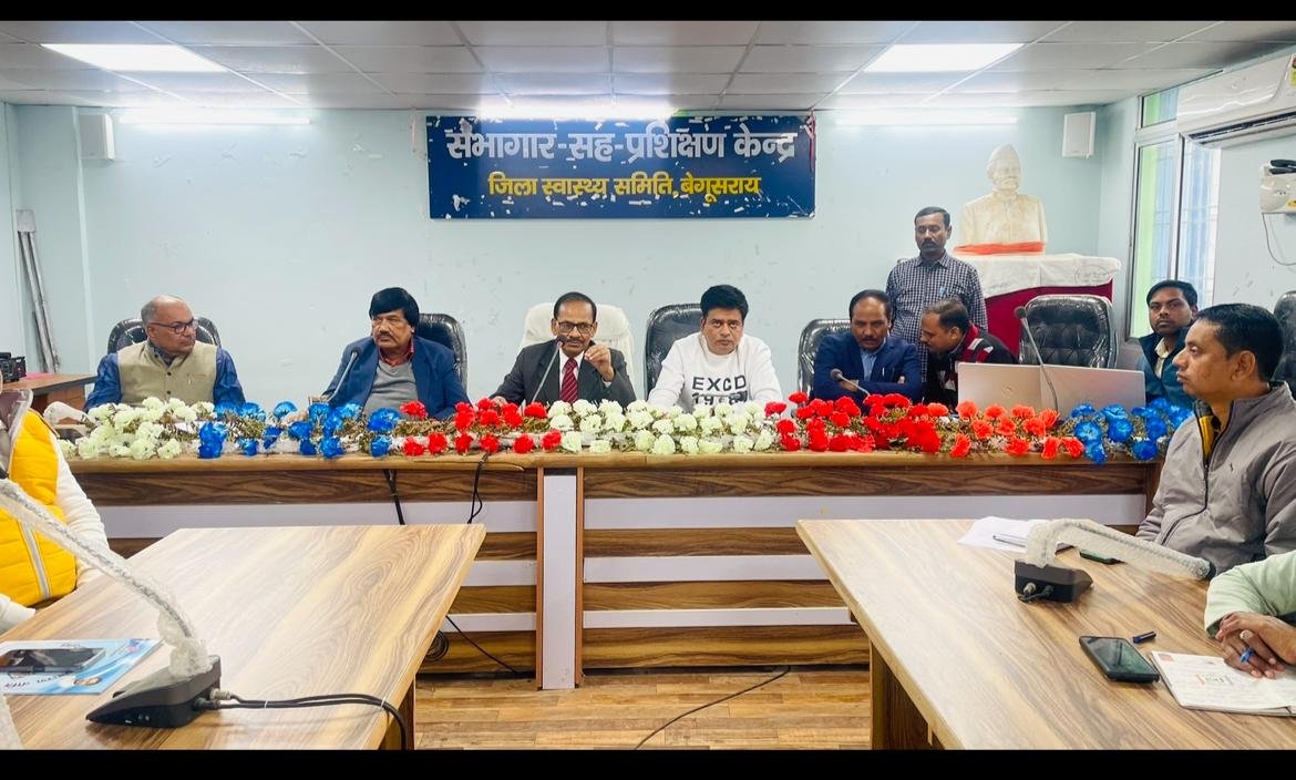 बेगूसराय: मुंगेर के आर.ए.डी. डॉ. विरेन्द्र कुमार एवं सिविल सर्जन डॉ. प्रमोद कुमार सिंह की अध्यक्षता में जिला स्वास्थ्य समिति के सभागार में स्वास्थ्य विभाग की समीक्षात्मक बैठक आयोजित की गई।