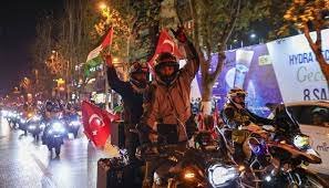 استنبول، یکم جنوری:نئے سال کے موقع پر ترکیہ کے شہر استنبول کے گلاٹا برج پر غزہ کی حمایت میں مارچ کیا گیا۔ میڈیا کے مطابق غزہ کی حمایت میں احتجاجی مارچ میں ہزاروں افراد نے شرکت کی، مظاہرین نے استنبول میں امریکی قونصلیٹ کے باہر جمع ہو کر احتجاج کیا۔دوسری جانب فلسطین کے شہر رام اللّٰہ میں غزہ میں شہید فلسطینیوں کی یاد میں احتجاج کیا گیا۔عرب میڈیا کا کہنا ہے کہ مظاہرین نے غزہ کے ہزاروں شہداء کے ناموں سے بھرا ایک طویل بینر اٹھا رکھا تھا۔عراق کے دارالحکومت بغداد میں بھی غزہ کے شہریوں کے ساتھ اظہارِ یکجہتی کیا گیا اور کرسمس ٹری کو کفن میں لپٹے بچوں کی لاشوں کی مانند بنایا گیا۔واضح رہے کہ سال 2023 کے آخری روز بھی اسرائیلی فوج نے غزہ پر حملے کیے جس کے نتیجے میں مزید 150 سے زیادہ فلسطینی شہید ہو گئے۔خان یونس میں رہائشی عمارت پر حملے میں ایک ہی خاندان کے 13 افراد شہید ہوئے، جس کے بعد شہداء کی مجموعی تعداد 22 ہزار سے بڑھ گئی۔