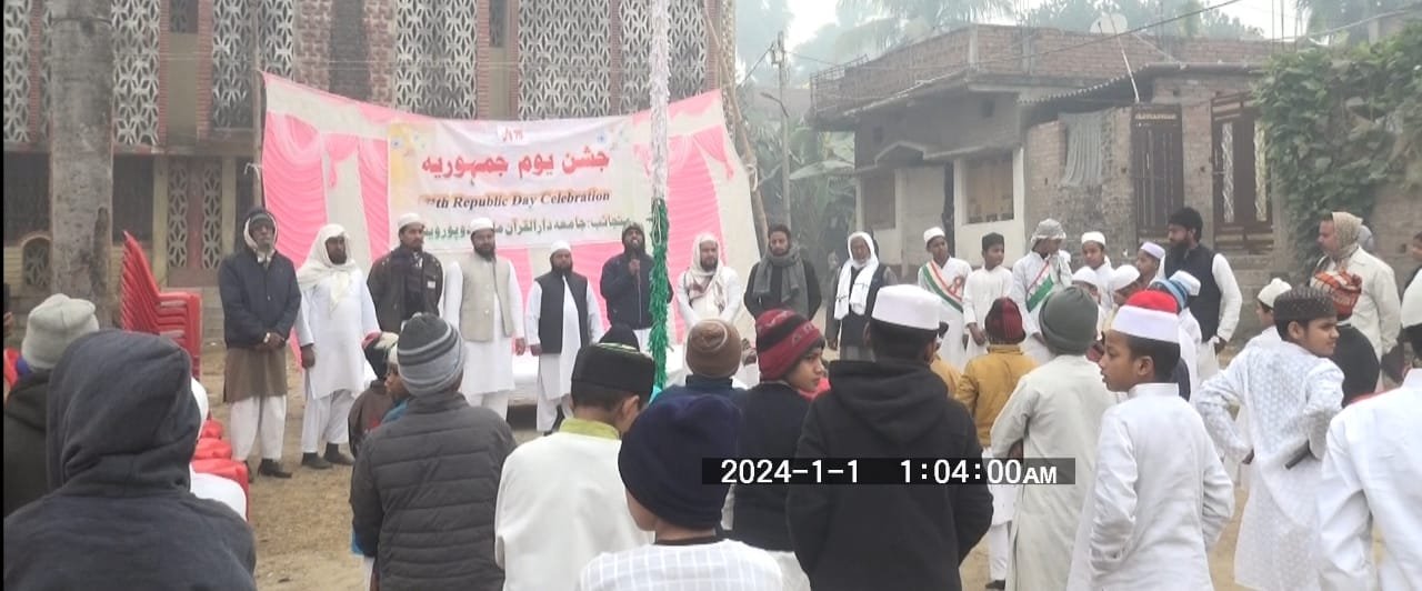 حاجی پور(شرافت خان) جامعہ دارالقرآن مائل بدوپور ویشالی میں یوم جمہوریہ کے موقع پر ائمہ و علماءکرام کا خطاب جس میں جامعہ دارالقرآن مائل کے بچوں نے مل کر یوم جمہوریہ جوش وخروش کے ساتھ منایا ہر ایک بچوں نے آزادی میں حصہ لینے مہاتما گاندھی اشفاق اللہ مولانا ابوالکلام آزاد سبھاش چندر بوش چندر شیکھر آزاد ٹیپو سلطان بھگت سنگھ راجندر پرساد وغیرہ وغیرہ کو یاد کرتے ہوئے ان کے کرداروں کو بھی بچوں نے اپنے اپنے تقریر میں پیش کیا اور تمام ہندوستانیوں کو یوم جمہوریہ کی مبارکبادی پیش کی مزید بچوں نے 1947 سے لیکر 1950تک کے حالات بتاتے ہوئے ڈاکٹر بھیم راؤ امبیڈکر کو بھی یاد کیا گیا،اس موقع پر علماء نے بتایا کہ کی بھیم راؤ امبیڈکر نے قانون لکھا اور کہا کہ ہندوستان ایک جمہوری ملک ہے اس میں ہر مزہب کے لوگوں کو اپنے اپنے مزہب کے مطابق جینے کا حق حاصل ہے اور ہندوستان دنیا کی ایک بہت بڑی جمہوری ملک ہے اس موقع پر  مولانا آصف جمیل قاسمی  حافظ توصیف صاحب نے بتایا کہ اس ملک کے لئے بہت سارے علماء کرام نے اپنی جان کی قربانی پیش کی اور انگریزوں کی غلامی سے دیش کو آزاد کرایا مزید بتاتے ہوئے کہا کہ بھگت سنگھ اپنے دیش خاطر ہستے ہوئے بھانسی کے تخت پر چڑھ گئے اور کہا کہ شیرے ہند ٹیپو سلطان انگریزوں کے سامنے پہاڑ کی چٹان کی طرح کھڑے ہوگئے اور اپنے دیش کی خاطر شہید ہوگئے اس پروگرام میں مولانا بشیر علقمہ قاسمی ناظم تعلیمات جامعہ دارالقرآن مولانا شہباز قاسمی صاحب استاذ جامعہ دارالقرآن ماسٹر عارف استاذ جامعہ دارالقرآن حافظ اشرف جمال صاحب محمد نور صاحب اکبر حسین صاحب