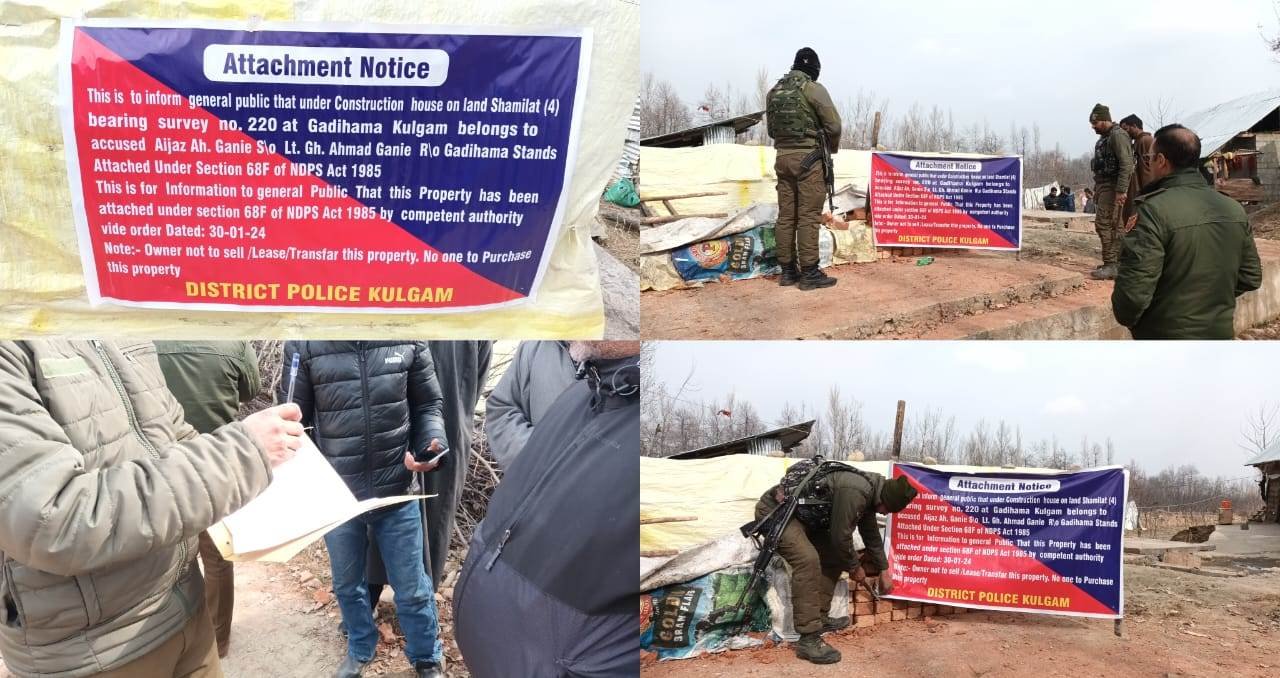 کولگام پولیس کی طرف سے کی گئی تحقیقات کے دوران جائیداد کی شناخت غیر قانونی طور پر حاصل کی گئی جائیداد کے طور پر کی گئی۔ یہ جائیداد پہلی نظر میں مالک کی طرف سے نشہ آور ادویات اور سائیکو ٹراپک مادوں کی غیر قانونی اسمگلنگ سے حاصل کی گئی تھی۔ قابل ذکر بات یہ ہے کہ مذکورہ منشیات فروش کیس ایف آئی آر نمبر 184/2020 اور *پولیس اسٹیشن کولگام* کے کیس ایف آئی آر نمبر 83/2022 میں ملوث ہے۔