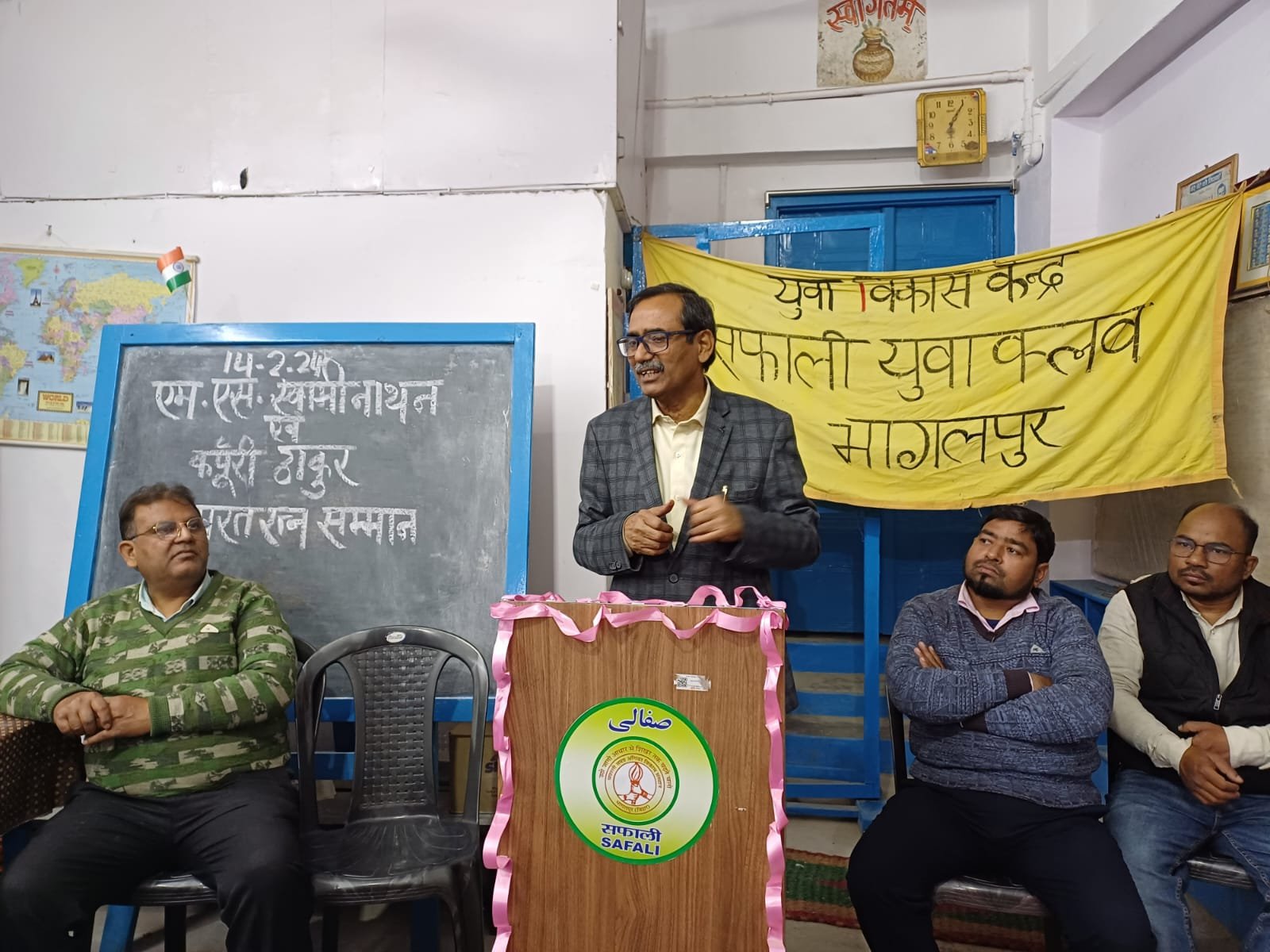 بھاگلپور ( منہاج عالم) صفالی یوبا کلب سرائے میں سابق وزیراعلی کرپوری ٹھاکر اور ڈاکٹر ایس سوامی ناتھن کو بھارت رتن اعزاز سے نوازے جانے پر اعزازی تقریب کا انعقاد کیا گیا . پروگرام کا افتتاح مونگیر یونیورسٹی شعبہ پی پی جی اردو کے صدر نے کیا. انہوں نے کہا کہ کر پوری ٹھاکر نے عوام کی بھلائی کے لیے بہتر کام کیا اور انہوں نے اپنی زندگی میں حب الوطنی اور اخوت کا پیغام دیا انہوں نے اسے اپنی زندگی میں اتار کر دکھایا . انہوں نے سماج کو آئینہ دکھایا اور انقلاب کیوجہ سے سماج میں ایک بڑی تبدیلی آئ اس کے بہتر خدمات کے اعتراف میں مرکزی حکومت نے انہیں بھارت رتن اعزاز سے نوازا . وہیں ڈاکٹر شاہد جمال نے ڈاکٹر ایس سوامی ناتھن کو خراج عقیدت پیش کرتے ہوئے کہا کہ ملک میں خردنی ایشیاء پیداوار کو بڑھانے کے لیے کتنی بڑی پہل کی ہے آج انکے محنت کا نتیجہ ہے کہ اتنی بڑی ابادی کو گیہوں اور دھان مل رہا ہے اور کوئی بھوکا نہیں سو رہا ہے . اس موقع پر سفالی یوبا کلب کے صدر اور جے پی یونیورسٹی چھپرا کے سابق وائس چانسلر ڈاکٹر فاروق علی نے کہا کہ ڈاکٹر ایس سوامی ناتھن ہریت کرانتی کے بانی تھے . انہوں نے دیش کی ترقی اور کسانوں کے فلاح بہبود اور ترقی کے لئے کڑی محنت کی . ہرت کرانتی ان کی کوششوں اور مضبوط اور مستحکم حلف کا نتیجہ ہے کہ اج ملک میں ایگریکلچر حلقہ میں انقلابی ترقی ہوئی ہے . ڈاکٹر فاروق علی نے کہا کہ ڈاکٹر سوامی ناتھن نے کسانوں اور ملک کی مدد کی . اس موقع پر گل افشاں نے اظہار خیال کرتے ہوئے کہا کہ اس موقع پر ہم لوگوں کو دونوں عظیم ہستیوں کی حصول یابی سے سبق لیکر اپنے ملک کی ترقی اور خوشحالی کے لیے کوشش کرنی چاہیے تبھی ہم کامیاب ہوں گے اور دیس اور سماج کو مستحکم ترقی یافتہ بنا سکیں گے . اس موقع پر سجاد عالم نے بھی خطاب کیا . اس موقع پر تسنیم کوثر معین امتیاز علی خوشی پروین ترنم خاتون سکینہ خاتون سمیت کئی ممبر موجود تھے .