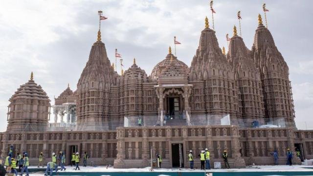 وزیر اعظم نریندر مودی متحدہ عرب امارات کے دو روزہ دورے پر ہیں۔ اس دوران وہ اپنی دیگر مصروفیات کے علاوہ آج14 فروری بروز بدھ ملک کی راجدھانی ابوظہبی میںبی اے پی ایس یعنی ’’بوچاونواسی اکشر پروشوتم سوامی ناراین سنستھان ‘ (بی اے پی ایس) نام کے ایک پر شکوہ مندر کا افتتاح بھی کریں گے۔اس مندر کو راجستھانی گلابی پتھر اور اطالوی ماربل کی مدد سے تعمیر کیا گیا ہے۔قابل ذکر ہے کہ ابو ظہبی کے ولی عہد نے سنہ 2015 میں پی ایم نریندر مودی کے دورہ کے دوران اس مندر کے لیے 13.5 ایکڑ زمین عطیہ کرنے کا اعلان کیا تھا۔جنوری 2019 میں متحدہ عرب امارات کی حکومت نے مزید 13.5 ایکڑ زمین عطیہ کی تھی۔ اس کے بعد مجموعی طور پر 27 ایکڑ زمین مندر کے لیے تحفے میں دی گئی ہے۔اس مندر کی بنیاد سنہ 2017 میں وزیر اعظم مودی نے ہی رکھی تھی۔ مندر کے سات مینار متحدہ عرب امارات کی سات امارتوں کی علامت ہیں۔اس مندر کی عمارت میں مہمان خانہ، عبادت گاہ، باغ اور دیگر ادبی جگہیں بنائی گئی ہیں۔ زمین کی حرکت، درجہ حرارت سمیت دیگر عوامل کو کنٹرول کرنے کے لئے اس عمارت میں 100 کے قریب سینسر نصب کیے گئے ہیں ۔ بتایا جاتا ہے کہ 27ایکڑ کے قطعہ اراضی میں سے ساڑھے 13 ایکڑ کو مندر کا حصہ بنایا گیا ہے اور باقی ساڑھے 13 ایکڑ کو پارکنگ ایریا بنایا گیا ہے۔ مند ر کی تعمیر پر تقریباََ 400 ملین درہم خرچ کئے گئے ہیں۔ مانا جا رہا ہے کہ متحدہ عرب امارات میں اس مندر کے افتتاح کے مقصد سے پی ایم نریندر مودی کا یہ دورہ کافی اہمیت کا حامل ہوگا۔ دو طرفہ اور سفارتی تعلقات تو مضبوط ہو نگے ہی مشترکہ سیاسی، اقتصادی اور سفارتی مفادات کو طاقت ملے گی۔ساتھ ہی بین الاقوامی سطح پر امن اور خوشحالی کو فروغ بھی حاصل ہوگا۔ متحدہ عرب امارات کے بھارت میں سفیر عبدالناصر جمال الشعالی نریندر مودی کے اے ای دورہ یو کو خاص موقع قرار دیتے ہیں ۔ ان کہنا ہے کہ‘’یہ دورہ علامتی اہمیت کا حامل ہے۔ یہ دونوں ممالک کے درمیان دوستانہ تعلقات کو ظاہر کرتا ہے۔ مندر کے افتتاح کے علاوہ امید ہے کہ دونوں رہنماؤں کے درمیان ہونے والی ملاقات ’مثبت اور تعمیری‘ ثابت ہو گی۔