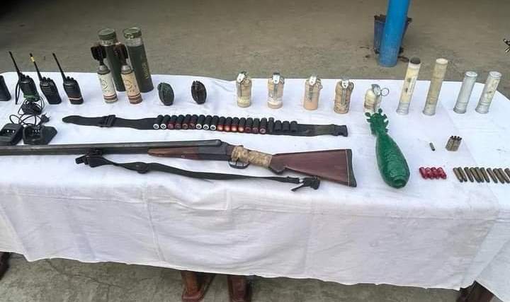منی پور پولیس نے آج کہا کہ سیکورٹی فورسز نے پہاڑی اور وادی کے اضلاع کے سرحدی اور حساس علاقوں میں تلاشی کارروائیاںکیں اور علاقے پر غلبہ حاصل کیا۔ سرچ آپریشن کے دوران ایک بندوق ڈبل بیرل، 17 گن ڈبل بیرل کے گولہ بارود ، تین بوفینگ آر/ایسچارجر کے ساتھ ، ایک آر/ایس ورٹیکس اسٹینڈرڈ، دو بم، ایک بم 81 ایم ایم مورٹار، دو 36 نمبر کے دستی بم، چار ٹیئر اسموک گرینیڈ، ایک ٹیئرچلی گرینیڈ ، دو ٹیئر اسموک شیل (شافٹ نوز)، دو ٹیئر ا سموک شیل (سی ایس)، چار منی فلیئر کارتوس (سرخ)، 10 انساس کے خالی راونڈز اور 10 انساس رائفل کارتوس (خالی ڈبے ) تھوبل ضلع سے برآمد کئے گئے ہیں ۔