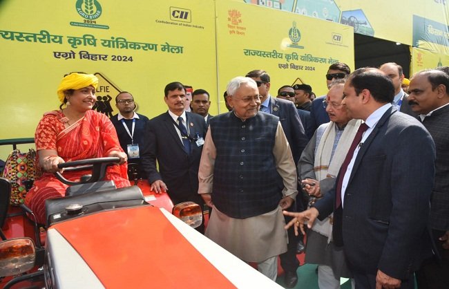 پٹنہ ، 10 فروری :وزیر اعلیٰ نتیش کمار نے ہفتہ کے روز گاندھی میدان میں منعقدہ ریاستی سطح کے زرعی میکانائزیشن میلے (ایگرو بہار- 2024) کا معائنہ کیا۔ وزیراعلیٰ نے مختلف اسٹال کا دورہ کیا اور زراعت میں کارا?مد جدید زرعی آ لات کے بارے میں معلومات لیں۔ اس ریاستی سطح کے زرعی میکانائزیشن میلے میں ملک کے بڑے زرعی آ لات بنانے والے اداروں کی طرف سے جدید آلات کی نمائش کی گئی ہے۔