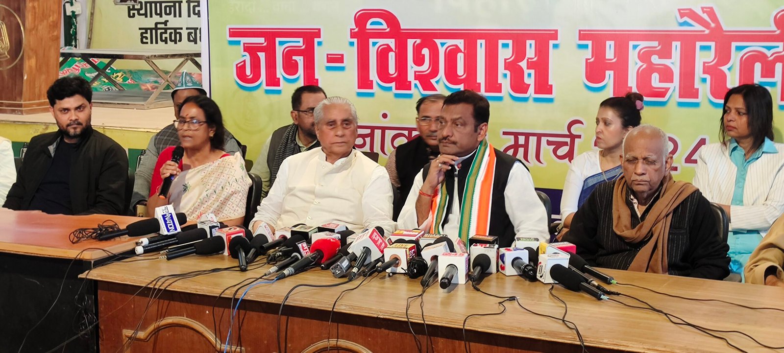 पटना महागठबंधन के सभी दलों के नेताओं की संयुक्त बैठक राष्ट्रीय जनता दल के राज्य कार्यालय, पटना में राजद के प्रदेश अध्यक्ष श्री जगदानन्द सिंह की अध्यक्षता में हुई। इस अवसर पर कांगे्रस के प्रदेश अध्यक्ष डाॅ0 अखिलेश प्रसाद सिंह कांगे्रस के वरिष्ठ नेता श्री कृपानाथ पाठक, भाकपा माले के पोलित ब्यूरो सदस्य काॅमरेड मीना तिवारी, वरिष्ठ नेता के0 डी0 यादव, काॅमरेड अभ्युदय, सीपीआई के राज्य सचिव काॅ0 रामनरेश पाण्डेय, सीपीआई नेता काॅ0 जानकी पासवान, काॅ0 रामबाबू कुमार, सीपीआई (एम) के काॅ0 सर्वोदय शर्मा, काॅमरेड अरूण कुमार, राष्ट्रीय जनता दल के राष्ट्रीय प्रधान महासचिव श्री अब्दुलबारी सिद्दिकी, राष्ट्रीय महासचिव श्री श्याम रजक, श्री भोला यादव, प्रदेश उपाध्यक्ष श्री वृषिण पटेल, प्रदेश प्रधान महासचिव श्री रणविजय साहू की उपस्थिति में बैठक में सर्वसम्मति से निर्णय लिया गया कि लोकतंत्र एवं संविधान बचाने के लिए दिनांक 03 मार्च, 2024 को पटना के गांधी मैदान में ‘‘जन विश्वास महारैली’’ आयोजित किया जायेगा। इस महारैली को राष्ट्रीय जनता दल के राष्ट्रीय अध्यक्ष श्री लालू प्रसाद, बिहार के पूर्व उपमुख्यमंत्री श्री तेजस्वी प्रसाद यादव, कांगे्रस के पूर्व राष्ट्रीय अध्यक्ष सह वरिष्ठ नेता श्री राहुल गांधी, भाकपा माले के काॅ0 दीपांकर भट्टाचार्या, सीपीआई के काॅ0 डी0 राजा, सीपीआई (एम) के काॅ0 सीताराम येच्यूरी सहित सभी दलों के प्रदेश अध्यक्ष और वरिष्ठ नेता संबोधित करेंगे। संवाददाता सम्मेलन को संबोधित करते हुए नेताओं ने कहा कि 17 महीने बनाम 17 साल के कार्यों के साथ-साथ बिहार में हुए जातीय गणना, आरक्षण की व्यवस्था को 75 प्रतिशत किये जाने सहित निम्नलिखित मुद्दों पर रैली में चर्चा की जायेगी। चार लाख से अधिक युवाओं को नौकरी दिये जाने। किसानों के उत्पादों की बिक्री के लिए मंडी व्यवस्था की पुर्नबहाली एवं एम.एस.पी. को कानूनी प्रावधान दिये जाने। 94.35 लाख गरीबों को दो-दो लाख रूपये दिये जाने। 35.42 लाख परिवारों को घर बनाने के लिए 1.20 लाख रूपया दिलाने एवं सभी गृहविहिनों को घर दिलाने एवं बिना वैकल्पिक व्यवस्था के घरों बस्तियों के उजाड़ने पर रोक। वर्षों से लंबित मांग नियोजित शिक्षकों को राज्यकर्मी का दर्जा दिये जाने का निर्णय। गुणवत्तापूर्ण शिक्षा की नीव रखने तथा गुणवत्तापूर्ण शिक्षकों की नियुक्ति किये जाने। स्वास्थ्य सेवाओं में अप्रत्याशित सुधार के साथ-साथ एक लाख पैंतीस हजार से अधिक स्वास्थ्यकर्मी की बहाली प्रक्रिया को अंतिम चरण तक पहुंचाने का निर्णय। शहरो में वाटर ड्रेनेज व्यवस्था किया गया। सड़कांे, पुलों, बायपास एवं ग्रामीण सड़कों का निर्माण कराया जाना। आंगनबाड़ी सेविका, सहायिका और पंचायत प्रतिनिधियों का मानदेय बढ