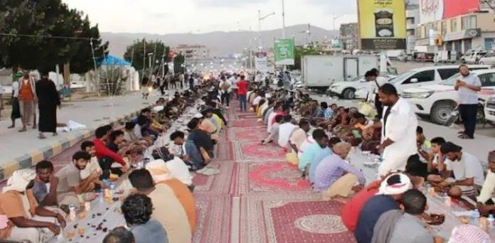 یمن کے المکلا شہر میں طویل افطار دسترخوان کا اہتمام