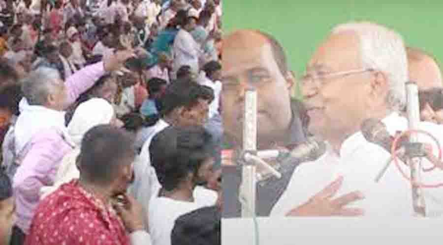 نوادہ،14 اپریل : لوک سبھا انتخابات سے پہلے بہار کے وزیر اعلی نتیش کمار این ڈی اے کی حمایت میں مسلسل جلسے کر رہے ہیں۔ اسی سلسلے میں وہ نوادہ کے وارث علی گنج میں ایک جلسہ عام سے خطاب کر رہے تھے۔ یہاں انہوں نے بہت سے مسائل پر بات کی اور مسلمانوں سے بہت سے سوالات کئے۔مسلمانوں کو پیغام دیتے ہوئے نتیش کمار نے کہا کہ ہم مسلم لوگوں کو یاد دلاتے ہیں کہ پہلے جھگڑے ہوتے تھے۔ کبھی کبھی وہ کچھ کرتے تھے لیکن جب ہم آگئے تو لڑائی جھگڑے نہیں ہونے دیا۔ اب ہندو مسلم تنازعہ نہیں ہے۔ پہلے یہ برابر تھا۔ کیا آپ ہمیں بھول جائیں گے۔ اگر ہم بی جے پی کے ساتھ ہیں تو ہم کہہ سکتے ہیں کہ ہم اس کے ساتھ ہیں۔بی جے پی صرف ہمارے ساتھ تھی۔ بی جے پی 2005 سے ہمارے ساتھ ہے۔ جب ہم اکٹھے ہوئے تو ہم نے تمام مسلمانوں کے لئے ٹھیک کام کیا۔ کیا اب کوئی مسئلہ ہے جناب؟ ہم نے مسلمانوں کے لیے بہت کام کیا ہے۔ نتیش کمار نے نوادہ میں ایک بار پھر 4000 ممبران پارلیمنٹ کے بارے میں بات کی۔نتیش کمار نے ایک بار پھر غلطی سے نوادہ میں 400 کے بجائے 4000 ایم پی کہہ دیا۔ پھر جب پیچھے سے ٹوکا گیا تو معذرت کہہ کر درست کر دیا۔ اپوزیشن نے نتیش کمار کے بیان پر بھی حملہ کیا۔ نتیش کمار نے اپنی غلطی سدھار لی اور معافی مانگی اور مسکراتے ہوئے آگے بڑھ گئے۔ اس دوران نتیش کمار نے 2005 سے پہلے کے مسائل پر لالو خاندان کو گھیرا۔