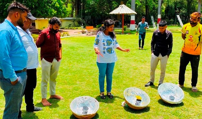 بھوپال، 30 مئی: عام طور پر دیہی علاقوں میں کسی بھی تقریب کے لیے تیار کردہ اناج یا پکوان بانس کی ٹوکریوں میں رکھے جاتے ہیں، لیکن اگر وہی ٹوکری پکوان بنانے کا ذریعہ بن جائے، وہ بھی بغیر گیس، بجلی یا مٹی کے تیل کے تو یہ عام لوگوں کے لیے حیران کن بات ہوگی۔ نیشنل ایوارڈ یافتہ سائنس براڈکاسٹر ساریکا گھارو نے بھی کچھ ایسا ہی کیا۔ انہوں نے جمعرات کی سہ پہر شدید گرمی سے پریشان لوگوں کو دھوپ کے فوائد بھی بتائے۔ساریکا نے تپتی دھوپ میں بانس کی ٹوکریوں کے اندر کی طرف ایلومینیم فائل لگائی، جس کی وجہ سے یہ ڈش کی طرح سورج کی شعاعیں جمع کرنا شروع کر دیں۔ ٹوکری کے بیچ میں میگی کو باہر سے سیاہ رنگ کے برتن میں پانی میں رکھ کر دھوپ میں رکھا گیا۔ چند منٹوں کے بعد جب برتن کھولا گیا تو میگی کھانے کے لیے تیار تھی۔ ناظرین نے اس میں مصالحہ ڈال کر ذائقہ بھی لیا۔