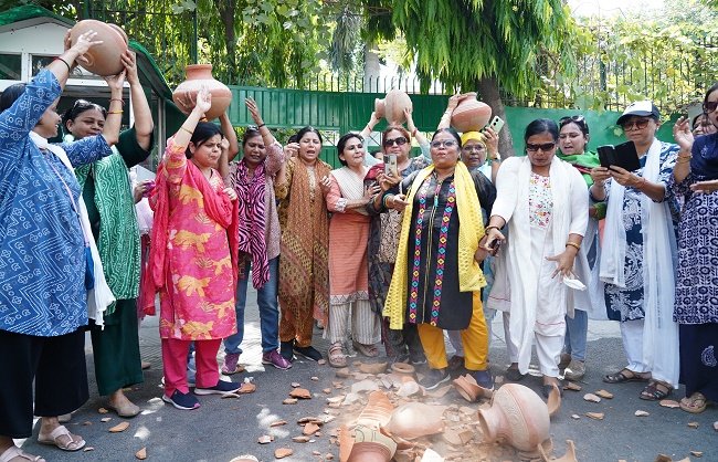 نئی دہلی، 30 مئی: دارالحکومت دہلی میں شدید گرمی کے درمیان لوگوں کو پانی کی قلت کا سامنا ہے۔ دہلی پردیش بی جے پی مہیلا مورچہ کے کارکنوں نے پانی کی قلت کو لے کر جمعرات کو دہلی کے پانی کے وزیر آتشی کے گھر کے باہر احتجاج کیا۔ خواتین کارکنوں نے گھر کے باہر مٹی کے برتن لے کر عام آدمی پارٹی حکومت کے خلاف مظاہرہ کیا اور کیجریوال کے خلاف نعرے لگائے۔