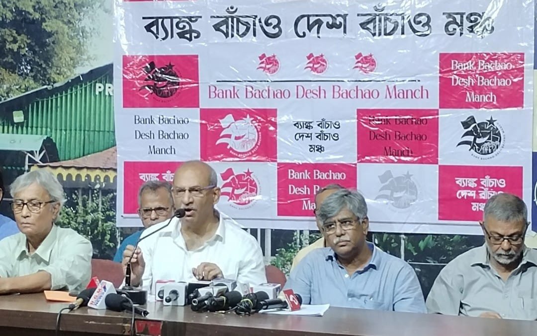 کولکتہ، 18/ جولائی (محمد نعیم) بینک بچاؤ دیش بچاؤ منچ نے بروز جمعرات 18/ جولائی کو کولکتہ پریس کلب میں ایک پریس کانفرنس کا اہتمام کیا۔ اس پریس کانفرنس میں منچ کے ایک سال مکمل ہونے پر منچ کی جانب سے 19/ جولائی بروز جمعہ کی شام کو جادو پور اے ٹی بی چوراہے پر منعقد ہونے والے سنکلپ اجلاس میں عام لوگوں کو شرکت کی دعوت دی گئی ہے۔