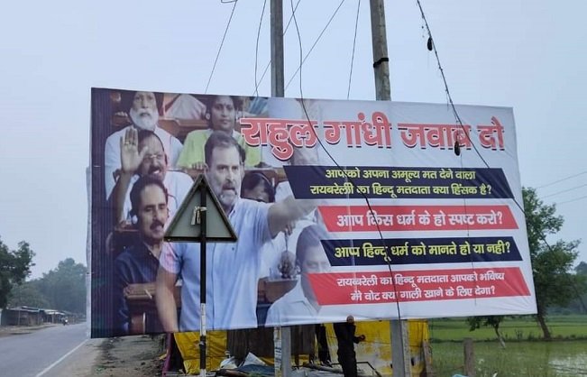 پوسٹر میں لکھا ہے’’راہل گاندھی جواب دو‘‘،’’آپ کو اپنا قیمتی ووٹ دینے والا رائے بریلی کا ہندو ووٹر کیا تشدد پسند ہے؟‘‘ آپ کس دھرم کے ہو، واضح کرو۔ آپ ہندو مذہب کو مانتے ہو یا نہیں،رائے بریلی کا ہندو ووٹر مستقبل میں آپ کو کیا گالی کھانے کے لیے ووٹ دے گا۔ ان متنازعہ الفاظ کے ساتھ پارلیمنٹ میں راہل گاندھی کی تقریر کرتے ہوئے تصویر بھی لگائی گئی ہے۔ کانگریس کے ضلع صدر پنکج تیواری نے کہا کہ یہ چھوٹی ذہنیت والے لوگوں کی کرتوت ہے۔