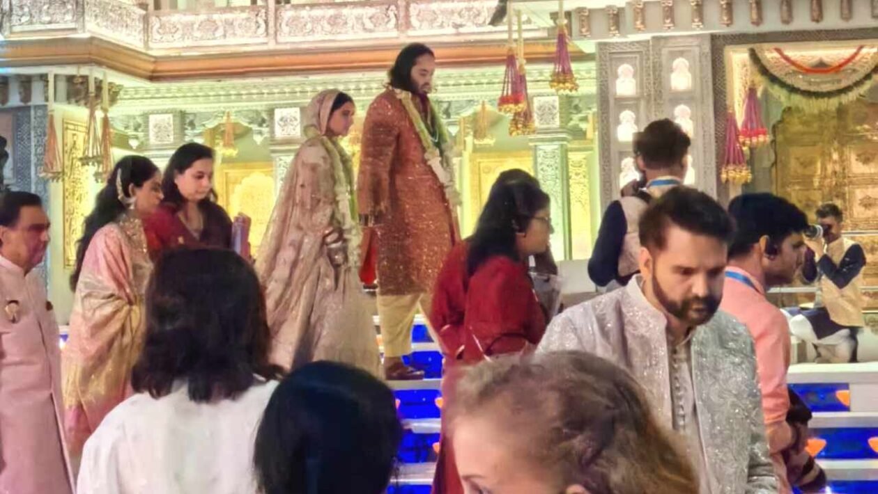 امبانی کی چھوٹی بہو رادھیکا مرچنٹ اپنے سسر مکیش امبانی کا ہاتھ پکڑے شادی ہال میں داخل ہوئیں۔ مکیش اور نیتا امبانی رادھیکا کو اپنی بیٹی مانتے ہیں۔ اس لیے دونوں نے شادی کے مندپ میں بہو کا استقبال کیا۔ پھر شادی کی مرکزی تقریب شروع ہوئی۔