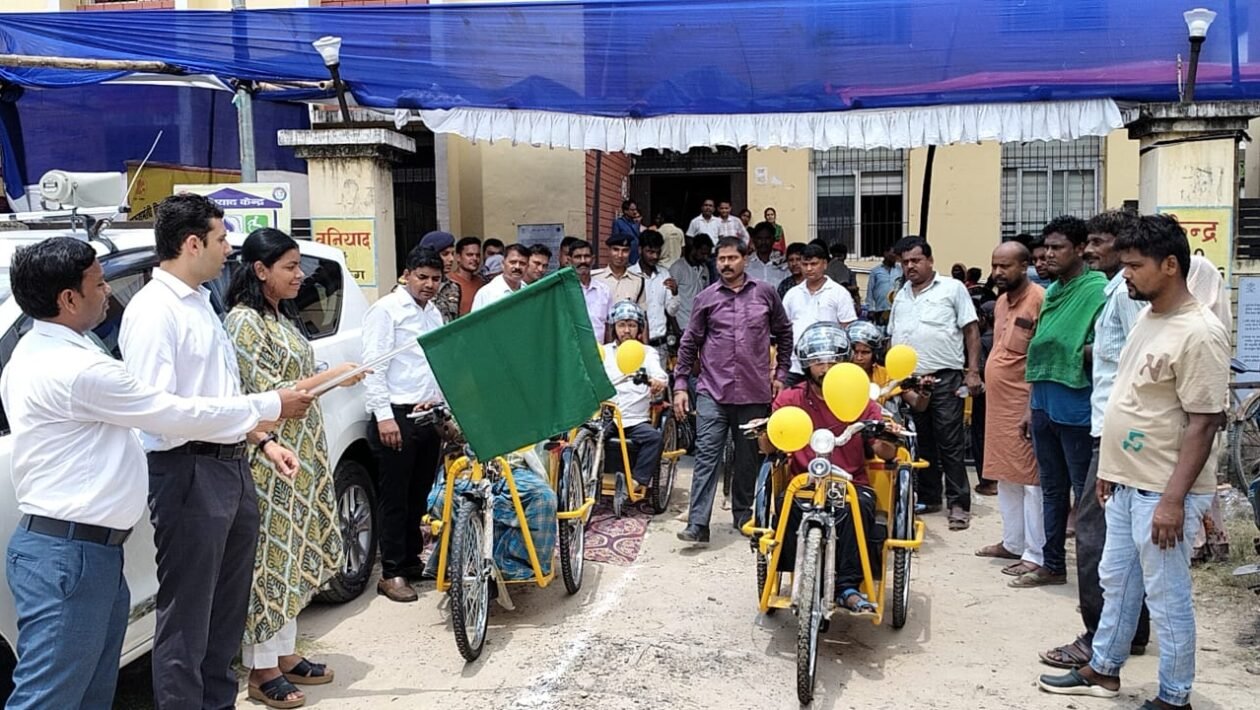 ضلع کے 32 معذور افراد میں بیٹری سے چلنے والی ٹرائی سائیکلوں کی تقسیم ‘پہلے آئیے پہلے پائیے’ کی بنیاد پر وزیرِ اعلیٰ ڈس ایبلڈ ایمپاورمنٹ اسٹوڈنٹس اسکیم کے تحت ڈسٹرکٹ آفیسر سیتامڑھی رچی پانڈے کے ذریعہ چلائی گئی سمبل اسکیم کے تحت سیتامڑھی کے بلاک کمپلیکس ڈومرہ میں ایک کیمپ کا انعقاد کیا گیا اور کیمپ میں موجود معذور افراد میں بیداری پیدا کرنے کے لیے پبلسٹی بھی کی گئی۔ انہوں نے کہا کہ مجھے خوشی ہے کہ اس طرح کی تقریب منعقد کرکے ہمارے معذور بھائیوں میں ٹرائی سائیکلیں تقسیم کی جارہی ہیں۔ حکومت اور ضلع انتظامیہ کا یہ ایک مسلسل اقدام ہے کہ معذور بھائیوں اور بہنوں کو قابل بنایا جائے اور اس بات کو یقینی بنایا جائے کہ وہ کسی بھی طرح اپنے حقوق سے محروم نہ ہوں۔ انہیں ایک بہتر پلیٹ فارم دیں: جیسے کہ انہیں تعلیمی سرگرمیوں، پیشہ ورانہ سرگرمیوں یا دیگر کاموں کے لیے طاقت ملے اور وہ اپنے کاموں کو عزت نفس کے ساتھ انجام دے سکیں۔ ضلع مجسٹریٹ نے معذور افراد کو ٹرائی سائیکلوں سے جھنڈی دکھا کر روانہ کیا۔ فاؤنڈیشن سنٹر کا ڈسٹرکٹ آفیسر نے معائنہ بھی کیا۔ معائنہ کے دوران عوام الناس کو فراہم کی جانے والی سہولیات اور بنیاد سنٹر میں نصب آلات کے بارے میں معلومات لی گئیں اور ضروری ہدایت دی گئیں۔ مذکورہ پروگرام میں اسسٹنٹ ڈائریکٹر، ڈسٹرکٹ ڈس ایبلڈ پیپلز سیل، سیتامڑھی، اسسٹنٹ ڈائریکٹر، ڈسٹرکٹ سوشل سیکورٹی سیل، سیتامڑھی، مسٹر ستیش کمار جھا، نذیر (ڈسٹرکٹ سوشل سیکورٹی سیل، سیتامڑھی)، مسٹر اروند کمار، اکاؤنٹنٹ (فاؤنڈیشن سینٹر)۔ )، مسٹر چندن کمار، ڈیٹا انٹری آپریٹر (ضلع دیویانگجن سیل، سیتامڑھی) اور دیگر موجود تھے۔