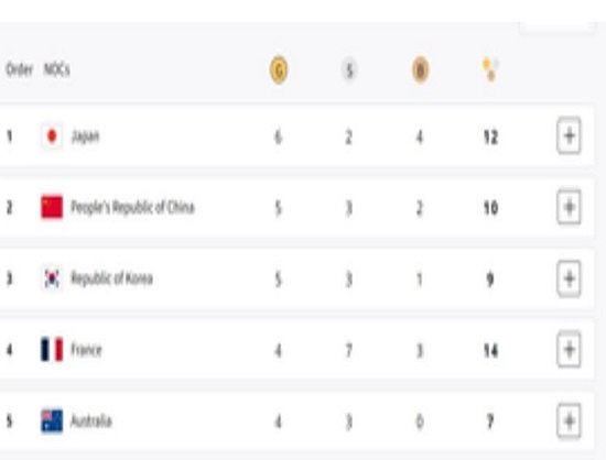 پیرس، 30 جولائی:۔ آرٹسٹک جمناسٹکس میں مردوں کے ٹیم ایونٹ میں شاندار فتح کی بدولت جاپان نے پیر کو اولمپک کھیلوں میں تمغوں کی تعداد میں سرفہرست مقام حاصل کر لیا۔ جمناسٹک میں گولڈ میڈل جیتنے کی بدولت جاپان کے کھاتے میں چھ گولڈ میڈلز اور کل 12 میڈلز ہوگئے ہیں اور وہ ٹاپ پوزیشن پر پہنچ گیا ہے۔