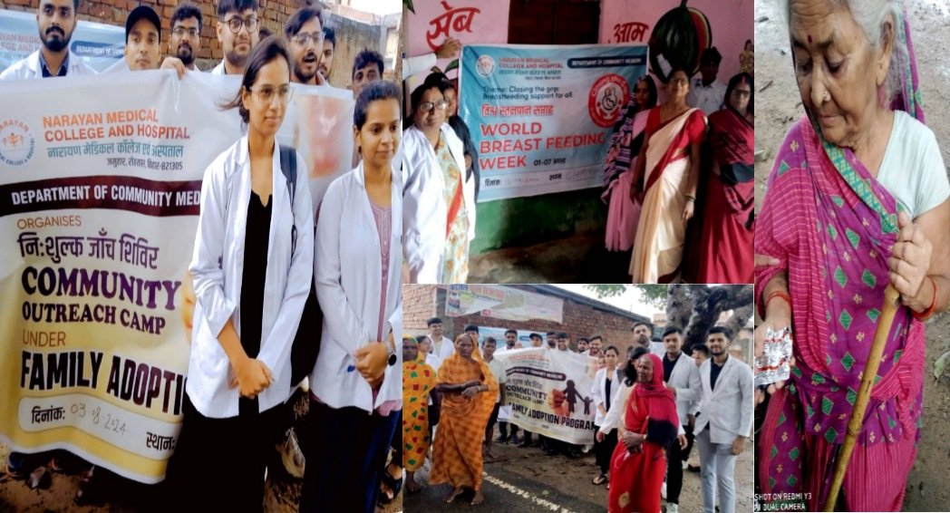 سہسرام ( انجم ایڈوکیٹ ) آج ورلڈ استن پان ویک کے ایک حصے کے طور پر کمیونٹی ہیلتھ ڈپارٹمنٹ نارائن میڈیکل کالج جموہار سہسرام نے دودھ پلانے والی خواتین کیلئے اکوڑھی گولہ کے چاندی گاؤں کے آنگن واڑی سینٹر میں ایک مفت صحت چیک اپ کیمپ کا انعقاد کیا اور ان خواتین کو اپنے نوزائیدہ بچوں کو دودھ پلانے کی ترغیب دی ۔اگلے دو سالوں کیلئے فوائد کی وضاحت کی گئی، اس سلسلے میں تمام خواتین کا ہیلتھ چیک اپ کیا گیا اور ضرورت کے مطابق ادویات مفت تقسیم کی گئیں ۔ قبل ازیں بریسٹ فیڈنگ ویک کے دوران جمہور ہائی اسکول کی طالبات کو مرکز میں رکھا گیا اور انہیں استن پان کے فوائد سے آگاہ کیا گیا، اس دوران انہیں نعروں، مختصر ویڈیو فلموں اور پوسٹر پریزنٹیشنس وغیرہ کے ذریعہ آگاہ کیا گیا ۔ اس موقع پر کمیونٹی میڈیسن ڈیپارٹمنٹ کے چیئرمین ڈاکٹر نپیندر آنند اور دیگر ڈاکٹروں میں ڈاکٹر نوین کمار، ڈاکٹر راہل کمار، ڈاکٹر شویتا سمن، ڈاکٹر این کے جوشی، ڈاکٹر دھرمندر کمار وغیرہ نے تعاون کیا ۔ نارائن نرسنگ کالج کے طلباء نے کوئز مقابلے میں حصہ لیا جسکے ذریعہ دودھ پلانے سے متعلق معلومات فراہم کی گئیں ۔ اس موقع پر مہمان خصوصی این ایم سی ایچ کے وائس پرنسپل ڈاکٹر اشوک کمار دیو، ڈاکٹر وویک ورما، ڈاکٹر کے کے کول، ڈاکٹر منی کانت کمار اور ڈاکٹر نپیندر آنند موجود تھے ۔