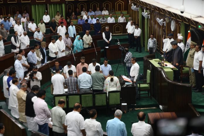 पहलगाम में हुए बर्बर आतंकवादी हमले के बाद सोमवार को विधानसभा के विशेष सत्र के दौरान मारे गए लोगों को श्रद्धांजलि देने के लिए दो मिनट का मौन रखा गया। पेश किये गए प्रस्ताव में सांप्रदायिक सद्भाव को बिगाड़ने और प्रगति में बाधा डालने के नापाक इरादों को हराने के लिए दृढ़ता से लड़ने का संकल्प लिया गया।