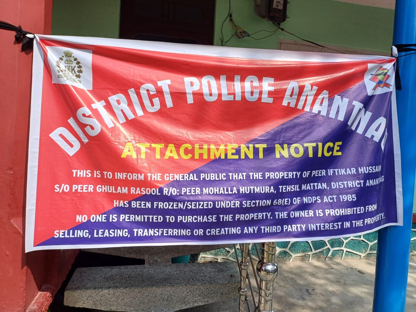 منشیات کی اسمگلنگ کے خلاف ایک بڑی کارروائی میں، اننت ناگ پولیس نے ایک بدنام زمانہ منشیات فروش کی جائیداد کو نارکوٹک ڈرگس اینڈ سائیکو ٹراپک سبسٹینسز (این ڈی پی ایس) ایکٹ کے تحت ضبط کر لیا ہے، جس سے ضلع میں منشیات کی لعنت کے خلاف کریک ڈاؤن کو مزید تیز کیا گیا ہے۔