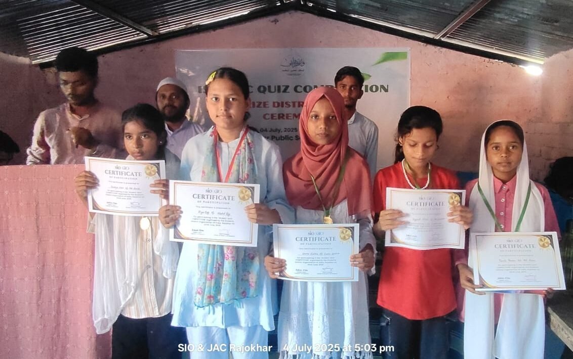 ارریہ: (مشتاق احمد صدیقی) اسٹوڈنٹ اسلامک آرگنائزیشن رجوکھر ارریہ ارریہ نے رجوکھر پبلک اسکول میں تقسیم انعامات کے ساتھ ساتھ موٹیویشنل کانفرنس اور اسلامی کوئز مقابلے کا انعقاد کیا۔ یہ تقریب نہ صرف مقابلے کا اختتام تھا بلکہ تعلیم، اخلاق اور امید کی روشنی سے مزین ایک یادگار شام بھی تھی۔ پروگرام کا آغاز نثار احمد کی تلاوت قرآن سے ہوا، جس کے بعد بھائی معاذ (یونٹ سیکرٹری) نے شاندار انداز میں ترانہ پیش کر کے سب کے دل کو جیت لیا۔ ایس آئی او راجوکھر یونٹ کے صدر محمد کلیم عالم نے نظامت کے فرائض کو بحسن وخوبی انجام دیا۔ پروگرام میں طلباء، والدین، اساتذہ اور سماجی کارکنوں کی بڑی تعداد نے شرکت کیں۔ صدام حسین (سابق ZAC ممبر اور زونل سکریٹری SIO بہار) جو مہمان خصوصی کے طور پر موجود تھے، نے کہا: “اسلامی تعلیم نہ صرف اسلام کے بارے میں معلومات فراہم کرتی ہے، بلکہ انسان کو بہتر بننے کی طرف رہنمائی بھی کرتی ہے اور اسے انتہائی مشکل حالات میں بھی ہمت نہ ہارنے اور اپنے مقصد کی طرف بڑھتے رہنے کی ترغیب دیتی ہے۔ ان کے خیالات نے نہ صرف بچوں کو بلکہ وہاں موجود تمام لوگوں کو متاثر کیا۔ جماعت اسلامی ہند کے کارکن وسیم اکرم فلاحی نے اسلامی نظریہ، انسانی اقدار اور تعلیم اور کیریئر کے حوالے سے وسیع نقطہ نظر اپنانے کا مشورہ دیا۔ جماعت اسلامی ہند رجوکھر یونٹ کی نمائندگی کرتے ہوئے تحسین عالم نے طلباء کو امت اسلامیہ کی حقیقت، اس کی تاریخ اور مستقبل میں ہماری ذمہ داریوں سے روشناس کرایا۔ اسٹیج پر موجود تمام لوگوں نے مل کر بچوں کو مبارکباد پیش کی اور اس دور میں اسلامی اور اخلاقی تعلیم کی اہمیت کو اجاگر کیا۔ اسلامی کوئز مقابلے کا انعقاد 22 جون کو M.S. میموریل سکول رجوکھر جس میں ہوا تھا، جس میں 60 سے زائد طلباء نے شرکت کی تھی۔ اچھی کارکردگی کا مظاہرہ کرنے والے بچوں کو خصوصی انعامات سے نوازا گیا۔