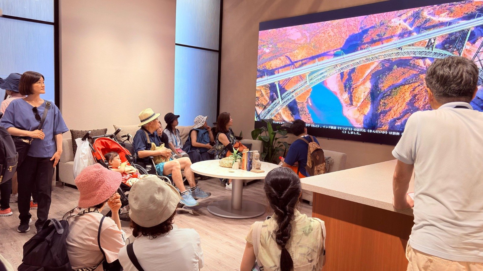 What I see is not only the exhibit of infrastructure; it is the moment of mutual pride and exploration. Japanese families, which are usually perceived to be reserved, are catching fire as they are not breaking the mold here. They are posing with the small models, they sit down and talk to the Indian representatives, and they even give them a chance to pronounce words such as Vande Bharat and Chenab with excited faces.