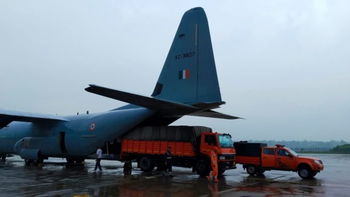جموں،27 اگست: ہندوستانی فضائیہ کا سی-130 ٹرانسپورٹ طیارہ راحت اور بچاو کا سامان لے کر بدھ کو جموں پہنچا تاکہ ماتا ویشنو دیوی یاترا کے راستے پر اردھ کنواری کے قریب لینڈ سلائیڈنگ سے متاثرہ لوگوں کی مدد کی جا سکے۔ذرائع نے بتایا کہ این ڈی آر ایف کا سامان لے کر ایک سی -130 ٹرانسپورٹ طیارہ اتر پردیش کے غازی آباد کے ہنڈن ایئر فورس اسٹیشن سے جموں پہنچا ہے۔ اس کے علاوہ چنوک اور ایم آئی-17 وی5 جیسے ہیلی کاپٹر جموں، ادھم پور، سری نگر اور پٹھانکوٹ میں قریبی اڈوں پر فعال اسٹینڈ بائی پر ہیں۔