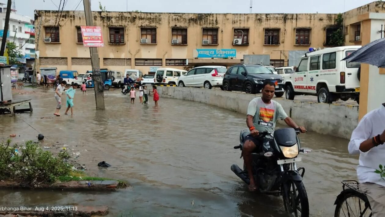 دربھنگہ(فضا امام):گھنٹوں کی بارش نے شمالی بہار کے سب سے بڑے میڈیکل انسٹی ٹیوٹ ڈی ایم سی ایچ کو جھیل میں تبدیل کر دیا۔ کئی محکموں کے احاطے میں پانی جمع ہونے سے ڈرین کی صفائی کے دعوے بے نقاب ہو گئے۔ ہسپتال کا ایک بھی شعبہ پانی بھرنے سے اچھوت نہیں رہا۔ اسپتال کے علاوہ دربھنگہ میڈیکل کالج کی انتظامی عمارت دن بھر ایک جزیرے میں تبدیل ہوگئی۔ کالج کے کئی ہاسٹلز کے احاطے بھی دن بھر شدید پانی کی لپیٹ میں رہے۔ کئی گھنٹوں کی بارش کی وجہ سے محکمہ اطفال کے احاطے میں دن بھر گھٹنوں تک پانی جمع رہا۔ وہاں جمع ہونے والا پانی شام تک بھی نہیں نکالا جا سکا۔میڈیسن ڈیپارٹمنٹ کا کیمپس دیر شام تک مکمل طور پر جھیل میں تبدیل ہو چکا تھا۔ پانی کی نکاسی کے لیے وہاں لگائے گئے فائر انجن بھی لوگوں کو راحت فراہم نہیں کر سکے۔ ساتھ ہی سپر اسپیشلٹی ہاسپٹل کے سامنے مین روڈ پر پانی جمع ہونے کی وجہ سے مریضوں کو کافی پریشانی کا سامنا کرنا پڑا۔ گائنی ڈپارٹمنٹ کے احاطے میں بھی دن بھر پانی کھڑا رہا۔ پانی ایم سی ایچ کے آبزرویشن روم میں داخل ہوگیا۔ پرانے ایمرجنسی احاطے میں بھی سام تک پانی جمع رہا۔ یہاں دربھنگہ میڈیکل کالج کی انتظامی عمارت کے احاطے میں پانی بھر جانے کی وجہ سے ڈاکٹروں کو اپنے محکموں تک پہنچنے میں کافی پریشانی کا سامنا کرنا پڑا۔ طلباء بھی بڑی مشکل سے اپنی کلاسوں میں پہنچ سکے۔ اگر موسم ایسا ہی رہا تو ڈی ایم سی ایچ میں صورتحال مزید خراب ہو سکتی ہے۔ یہاں گزشتہ تین دنوں سے مسلسل بارش کی وجہ سے شہر کے کئی نشیبی علاقوں میں پانی جمع ہوگیا ہے۔ جس کی وجہ سے لوگوں کو آمدورفت میں مشکلات کا سامنا ہے۔ اکثر علاقوں میں سڑک اور نالے کا فرق ختم ہو گیا ہے جس کی وجہ سے لوگوں کو حادثات کا بھی خدشہ ہے۔ لوگوں نے بتایا کہ نالیوں کی صحیح طریقے سے صفائی نہ ہونے کی وجہ سے ایسی صورتحال پیدا ہوئی ہے۔