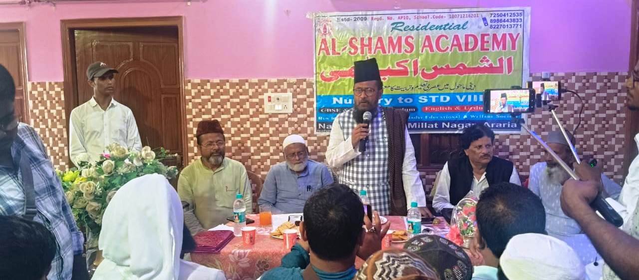 ارریہ :- ( مشتاق احمد صدیقی )  شہر ارریہ کے قلب میں واقع الشمس اکیڈمی ملت نگر کی دعوت پر سیمانچل کے خصوصی دور ے کے موقع پر سر زمین ارریہ میں تشریف فر ما عالیجناب مولانا غلام رسول بلیاوی صاحب چیئرمین مائنوریٹی کمیشن حکومت بہار و سابق ایم پی کا الشمس اکیڈمی کے ننھے منے  نونہالوں سمیت اکیڈمی کے ڈائریکٹر مولانا محمد سرور ندوی اور یہاں کے اساتذہ نے شاندار استقبال کرتے ہوئے انہیں خوش آمدید کہا اور عزیزم سیف اللہ سرور و انس غالب نے گلدستہ پیش کرکے مہمانان محترم کو اعزاز بخشا۔ ان کی آمد پر اکیڈمی کے کیمپس میں الحاج رضیہ احمد کی صدارت استقبالیہ پروگرام کا انعقاد ہوا۔ پروگرام کا آغاز تلاوت قران کریم سے کیا گیا جبکہ عالیہ مسکان ہاشمی، ناصرین پروین اورشاہینہ پروین نے ترانۂ اکیڈمی پیش کیا ۔الشمس اکیڈمی کے ڈائریکٹر سرورعالم ندوی و( اکزیکیٹیو رکن ضلع اوقاف کمیٹی ارریہ) نے معززمہمانان کا تعارف کرایا۔  سماجی وفلاحی شخصیت جناب رضی احمد نے ادارے کے بچوں کے ذریعہ پیش کئے گئے پروگرام کی تعریف کرتے ہوئے کہاکہ الشمس اکیڈمی میں اچھی تعلیم وتربیت کا بہتر ماحول ہے۔ میں اساتذۂ کرام و ذمے داران کو مبارکباد پیش کرتاہوں ۔بہارحکومت کے سابق وزیر جناب منظرعالم نے خطاب میں کہا کہ سرورندوی نے بڑی محنت سے اسکول کی شاندار بلڈنگ بنوائی اور عمدہ تعلیم کا نظم کیا ہے۔ انکے والد محترم الحاج ماسٹر محمد یونس صاحب (کوشکی پور) ایک نیک صفت اور علم دوست انسان ہیں ۔ شہر کے اکثر ادارے کے سرپرست ومشیر سید شمیم انور صاحب  راجدھانی پٹنہ سے آئے ہوئے اقلیتی کمیشن چیرمین کی توجہ کو کئی اہم پہلوؤں کی جانب مبزول کرائی۔ اس موقع پر مہمانانِ خصوصی مولانا غلام رسول بلیاوی صاحب( چیرمین مائنوریٹی کمیشن ) نے کہاکہ بھائی سرور عالم ندوی کی دعوت پر الشمس اکیڈمی ارریہ میں آنے کا موقع میسر ہوا۔ بچوں کی علمی مظاہرہ سے قلبی ودلی اطمینان ہوا۔ انہون نے قوم کے پاسبانوں سے کہا آپ جتنی محنت ویکسوئی کیساتھ تعلیم میں لگے رہینگے، اسی لیول اور سطح پر منزل مقصود تک کامیابی مل سکتی ہے۔ چیرمین بلیاوی نے مزید کہا موجودہ حکومت عزت مآب نتش کمار صاحب  نے غریب گارجین / والدین کے بچے وبچیوں کیلئے IAS/ UPSC جیسے دیگر  سروس کی تیاری کیلئے فری نظم کیا ہے۔ اورآج غریب کے بچے بھی اعلی عہدوں پر فائز ہورہے ہیں۔ ضلع ارریہ کے کوشکی پور گاوں میں قریب57 کروڑ کی خطیررقم سے مائنوریٹی رہائشی اسکول بنائے جانے کا تذکرہ کیا۔آپ نے فرمایا دنیا میں دو طرح کے لوگ رہتے ہیں  امیراور غریب۔ آپ پڑھتے ہیں تو مالک بنینگے ورنہ مزدور ہونگے۔ اس پروگرم کو کامیاب بنانے میں شعیب عالم، مولانا عامر حسین، ابرارمحسن، شازیہ جبیں، حلیمہ خاتون، محمد یزدان، ابونصر، صالحہ پروین، شمع ناہید، صبا پروین، سعداللہ سرور اورعاقل صائم نے اہم کردار ادا کیا۔ آخر میں ڈائریکٹر محمد سرور عالم ندوی نے مہمان مکرم غلام رسول بلیاوی سمیت تمام شرکاء کا دل کی گہرائیوں سے شکریہ ادا کیا اور انہیں اناسی واں یومِ آزادی کی مبارکباد پیش کرتے ہوئے اپنی نیک خواہشات کا اظہار کیا۔
