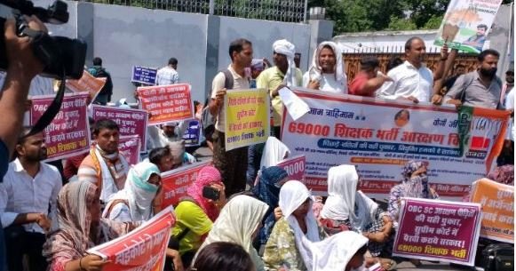 لکھنؤ، 18 اگست: اتر پردیش میں 69000 اساتذہ کی بھرتی میں ریزرو زمرے کے امیدواروں نے پیر کو بنیادی تعلیم کے وزیر کی رہائش گاہ کا گھیراؤ کیا۔ بڑی تعداد میں پہنچنے والے امیدوار وزیر کی رہائش گاہ کے سامنے نعرے لگا رہے ہیں۔ پولیس کی بھاری نفری موقع پر تعینات ہے۔ امیدواروں کا کہنا ہے کہ 69 ہزار اساتذہ کی بھرتیوں میں بڑے پیمانے پر بے ضابطگیاں ہوئیں جس کی وجہ سے ریزرو کیٹیگری کے ہزاروں امیدوار نوکری حاصل کرنے سے محروم ہو گئے۔ ہائی کورٹ میں اس کیس کی طویل سماعت ہوئی اور فیصلہ ان کے حق میں آیا۔ لیکن حکومت کی عدم توجہی کے باعث اس پر عمل درآمد نہ ہوسکا اور اب یہ معاملہ سپریم کورٹ میں ہے۔