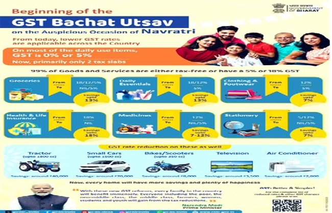 देशभर में आज से अमल में आने वाली जीएसटी में मुख्य रूप से सिर्फ पांच और 18 फीसदी की अब दो दरें हैं। हालांकि, लग्जरी और विलासितापूर्ण वाली वस्तुओं पर अलग से 40 फीसदी का कर लगाया गया है। नए बदलावों के अनुसार तंबाकू और संबंधित उत्पाद 28 फीसदी से अधिक उपकर की श्रेणी में बने रहेंगे। सरकार ने निर्देश दिया है कि जीएसटी की नई दरें लागू होने के बाद व्यापार और उद्योग जगत इसका पूरा लाभ ग्राहकों तक पहुंचाए। सरकार ने तीन सितंबर को जीएसटी दरों में कटौती का ऐलान किया था, जो आज से पूरे देश में प्रभावी हो गई है। जीएसटी काउंसिल की 56वीं बैठक में इस पर फैसला लिया गया था। ऐसे में आइए जानते इस बदलाव से कौन-सा सामान सस्ता हुआ है।