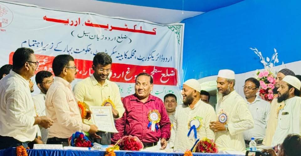ارریہ :- ( مشتاق احمد صدیقی ) ہر سال کی طرح امسال بھی ضلع اردو زبان سیل، ارریہ کے زیرِ اہتمام ضلع سطحی فروغ اردو سمینار، مشاعرہ و عمل گاہ کا انعقاد بڑے تزک و احتشام کے ساتھ ٹاؤن ہال ارریہ میں ہوا۔ اس پروگرام کا افتتاح ضلع مجسٹریٹ ارریہ اور مہمان خصوصی شری انیل کمار اور دیگر معززین بشمول عہدیداروں نے شمع روشن کرکے کیا۔ اس سے قبل اردو زبان سیل ارریہ کی جانب سے ضلع اردو زبان سیل ارریہ کے انچارج محمد ذوالفقار اور پروگرام کے آرگنائزر تعظیم احمد ندوی ودیگر اردو مترجمین نے تمام عہدیداران اور مہمانوں کا پھولوں کے گلدستے پیش کرکے شاندار استقبال کیا اور ان کی شال پوشی کرکے انہیں اعزاز بخشا۔ اس موقع پر ڈسٹرکٹ لینڈ ایکوزیشن آفیسر( ضلع اراضی حصول ) ارریہ شری وسیم احمد، اسسٹنٹ ڈائرکٹر ڈسٹرکٹ سوشل سیکورٹی سیل ارریہ شری دلیپ کمار، انچارج آفیسر اردو زبان سیل ارریہ شری ذوالفقار علی وغیرہ موجود تھے۔ پروگرام کے افتتاح کے معا بعد ضلع اردو زبان سیل کی طرف سے شائع ہونے والا سالانہ سوینیئر (رسالہ ) ضلع اردو نامہ ارریہ کا رسم اجراء کیا گیا۔ اس موقع پر پروگرام سے خطاب کرتے ہوئے ڈسٹرکٹ مجسٹریٹ ارریہ نے کہا کہ اردو درحقیقت مٹھاس اور بھائی چارے کی زبان ہے۔ یہ تنوع میں اتحاد کی علامت ہے۔ اردو زبان سیل ایسے پروگرام کے انعقاد پر تعریف کا مستحق ہے۔ انہوں نے اس طرح کے پروگراموں کو ضلع سے لے کر سب ڈویژن، بلاک اور اسکول کی سطح تک منعقد کرنے پر زور دیا۔ پروگرام کا پہلا سیشن فروغ اردو سیمینار کی شکل میں منعقد کیا گیا۔ اس سیشن میں پیپر ریڈر کی حیثیت سے ڈسٹرکٹ ایجوکیشن اینڈ ٹریننگ انسٹی ٹیوٹ فاربس گنج کے پرنسپل آفتاب عالم نے عوامی سطح پر اردو زبان کی ترقی میں پیدا ہونے والے مسائل اور ان کے حل پر اپنا مقالہ پیش کیا، پیپلز کالج ارریہ کے پرنسپل عنایت اللہ ندوی نے سرکاری سطح پر اردو زبان کی ترقی پر اپنا مقالہ پیش کیا۔ اقبال ندوی نے پرائمری اور سیکنڈری سطح پر اردو زبان کی تعلیم پر اپنا مقالہ پیش کیا، صحافی جناب پرویز عالم علیگ جنہوں نے بطور نمائندہ شرکت کی، نے ارریہ ضلع میں اردو کی ترقی، ہیڈ ٹیچر جناب مشیر عالم نے اردو بولنے والے طلباء کے لئے روزگار کے مواقع اور استاد جناب ظفر رحمانی نے اردو اساتذہ کی ذمہ داریوں پر اپنے خیالات کا اظہار کیا۔ پروگرام کے دوران طالبات عظمیٰ پروین، ایمن عائشہ، صدا آزاد اور صدف آزاد نے ایک کے بعد ایک غزل اور نظم پیش کرکے حاضرین کو مسحور کردیا۔ اس پروگرام کے دوسرے سیشن میں ایک مشاعرہ کا انعقاد کیا گیا۔ مشاعرہ میں علاقائی اور ریاستی سطح کے شعراء نے شرکت کیں جن میں خاص طور پر طارق بن ثاقب، ارشد انور الف، عبدالباری زخمی، خورشید قمر، خطیب حیدر، محمد جنید عالم، محمد عطاء اللہ، مشتاق انجم، فیاض راہی اور شنکر کیموری شامل تھے۔ تمام شعراء نے اپنے نئےکلام اور غزلوں س خوب خوب داد تحسین کیں، خاص طور پر شنکر کیموری، فیاض راہی اور ارشد کی غزلوں کو سامعین نے بہت پسند کیا۔ اس پروگرام کے تیسرے اور آخری سیشن میں اردو ورکشاپ کا اہتمام کیا گیا۔ جس میں ضلع کے تمام بلاکس کے اساتذہ نے شرکت کی۔ آخر میں انچارج آفیسر ڈسٹرکٹ اردو زبان سیل ارریہ نے اظہار تشکر پیش کیا۔ اس پروگرام کو کامیاب بنانے میں اردو مترجم تعظیم احمد ندوی، محمد منہاج عالم، محمد۔ مشکور عالم، انور حسین، محمد۔ اسرارالحق، مسز سلمیٰ رحمانی، خوشبو دلکش اور معاون اردو مترجمین میں اسامہ صابر، انتخاب پاشا، ریحان احمد، محمد۔ گوہر اور مسز غوثیہ ناز اور مسز فرحت نگاہ کے ساتھ راہب اختر D.V. کلرک، مسٹر امتیاز علی انصاری U.V. کلرک نےاہم کردار ادا کیا۔