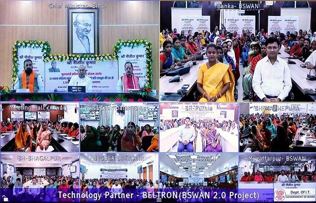 پٹنہ، 06 اکتوبر:وزیر اعلی نتیش کمار نے آج 1انے مارگ واقع سنکلپ سے مکھیہ منتری مہیلا روزگار یوجنا کی21 لاکھ مستفید خواتین کے اکاونٹ میں فی مستفید 10 ہزار روپے کی شرح سے 2100 کروڑ روپے کی رقم منتقل کیا۔